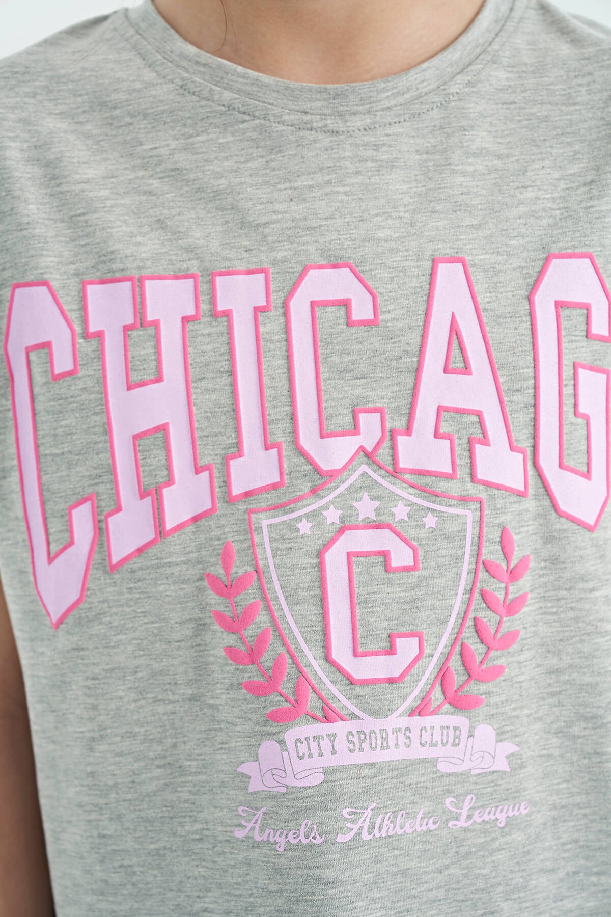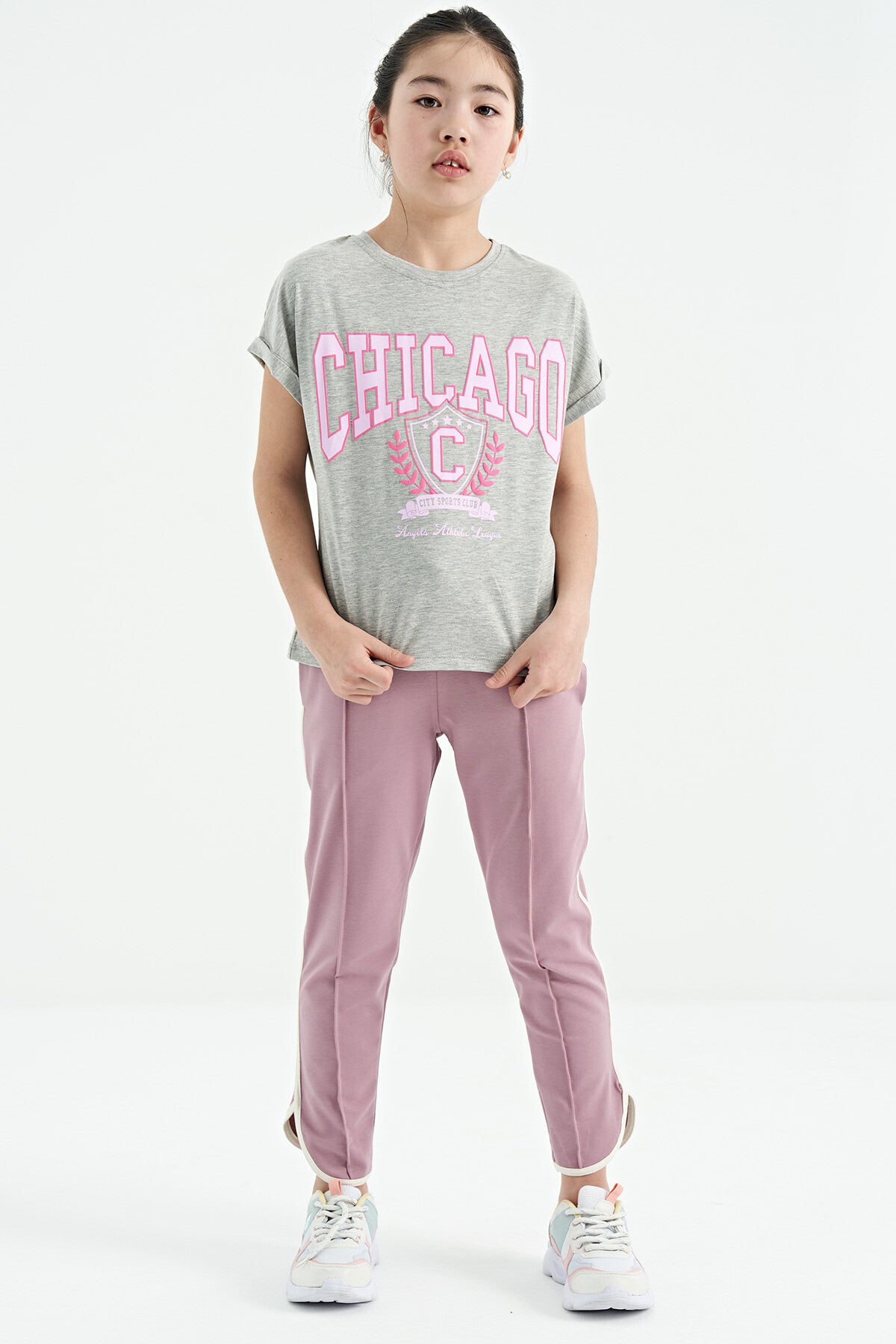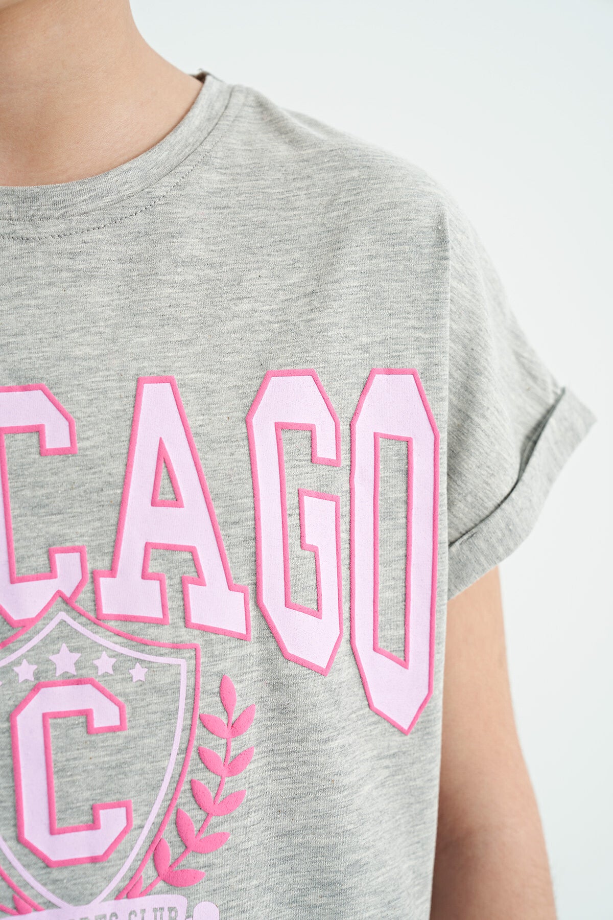 Grey Melange O Neck Drop Shoulder Relaxed Fit Short Sleeve Girls T-Shirt - 75128