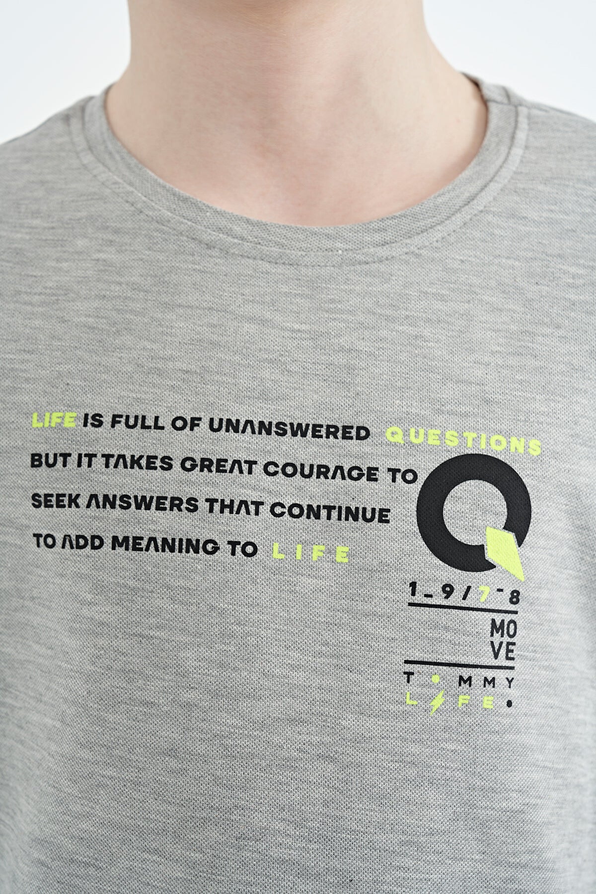 Grey Melange Print Detailed O Neck Standard Fit Boys' T-Shirt - 11145