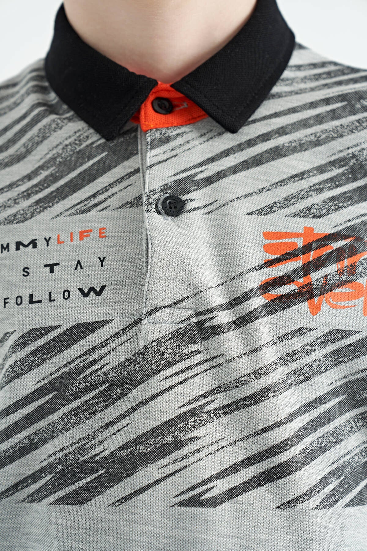 Grey Melange Print Detailed Polo Collar Standard Fit Boys' T-Shirt - 11161