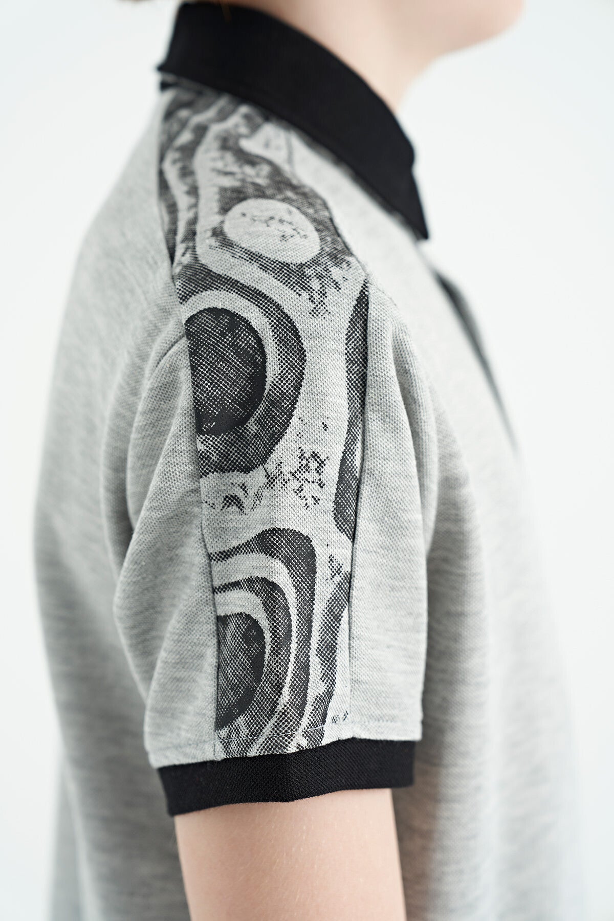 Grey Melange Print Detailed Polo Collar Standard Fit Boys T-Shirt - 11166
