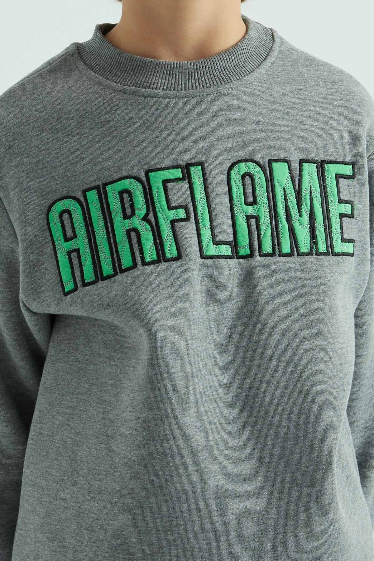 Grey Melange Print Embroidered O Collar Standard Fit Boys' Sweatshirt - 10987