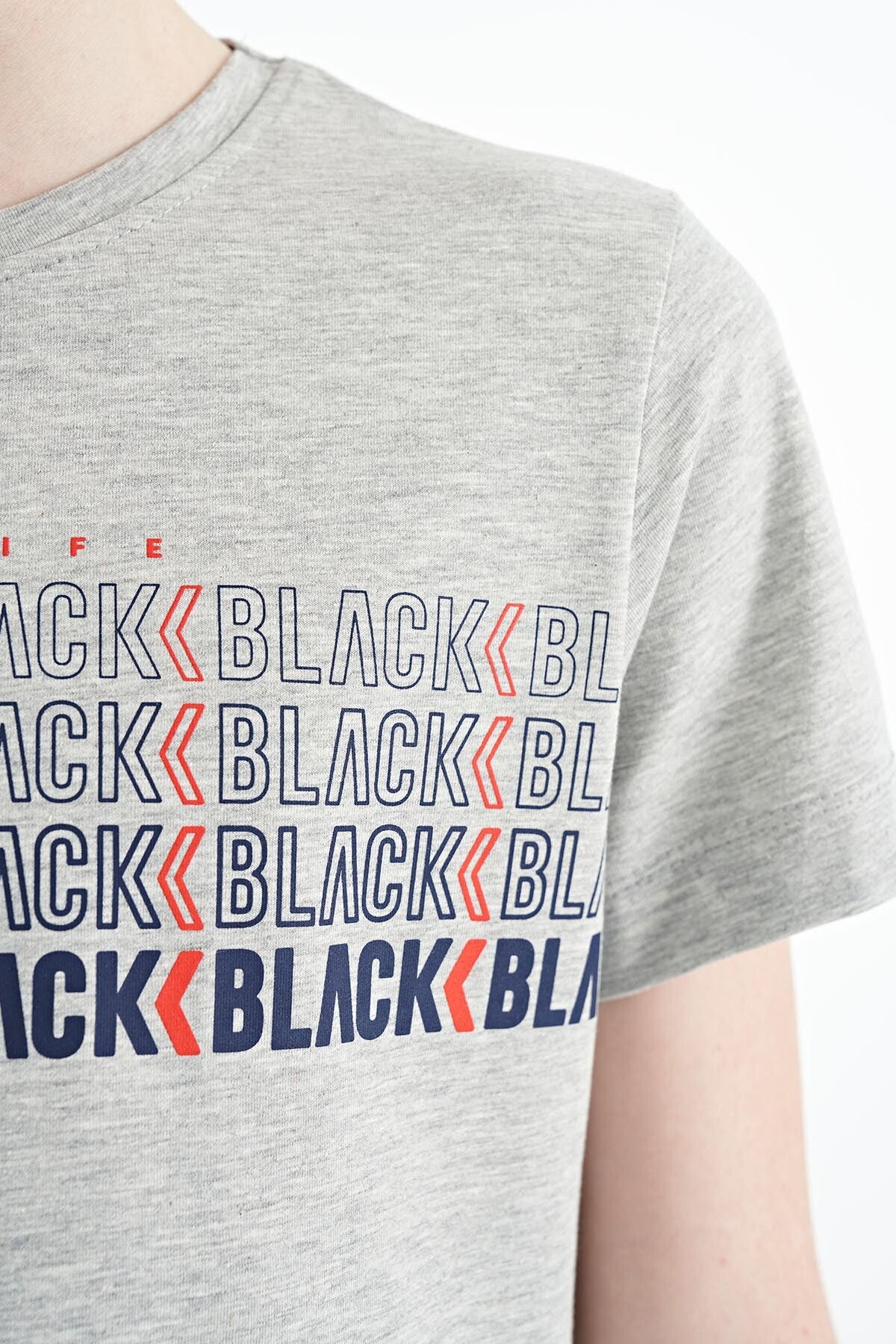 Grey Melange Print O Neck Standard Fit Boys T-Shirt - 11149