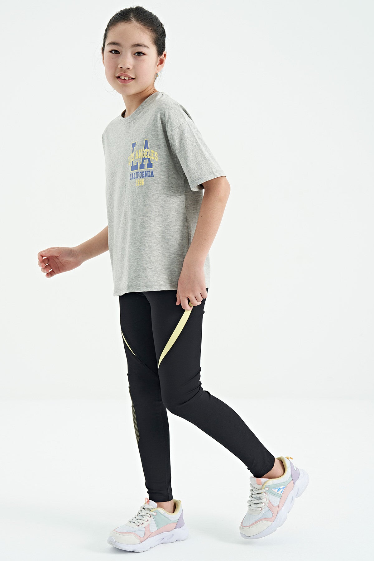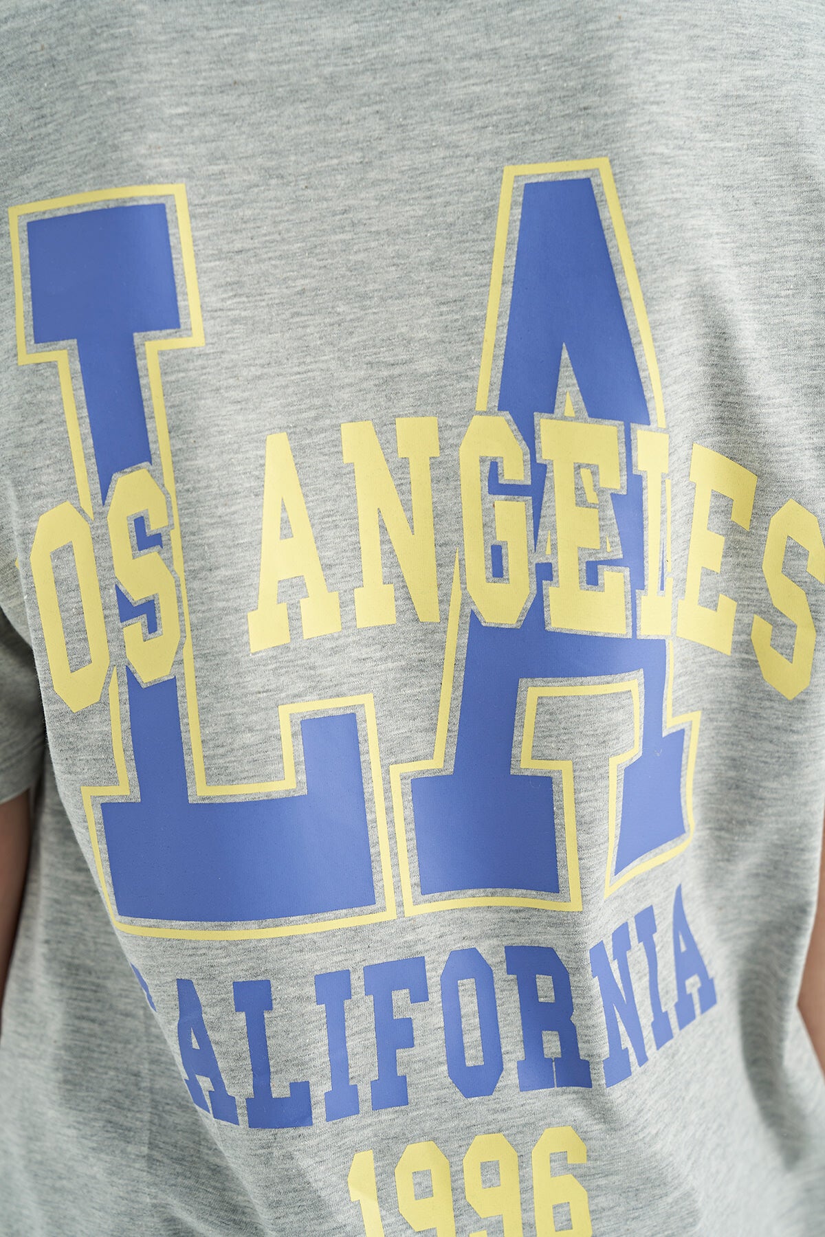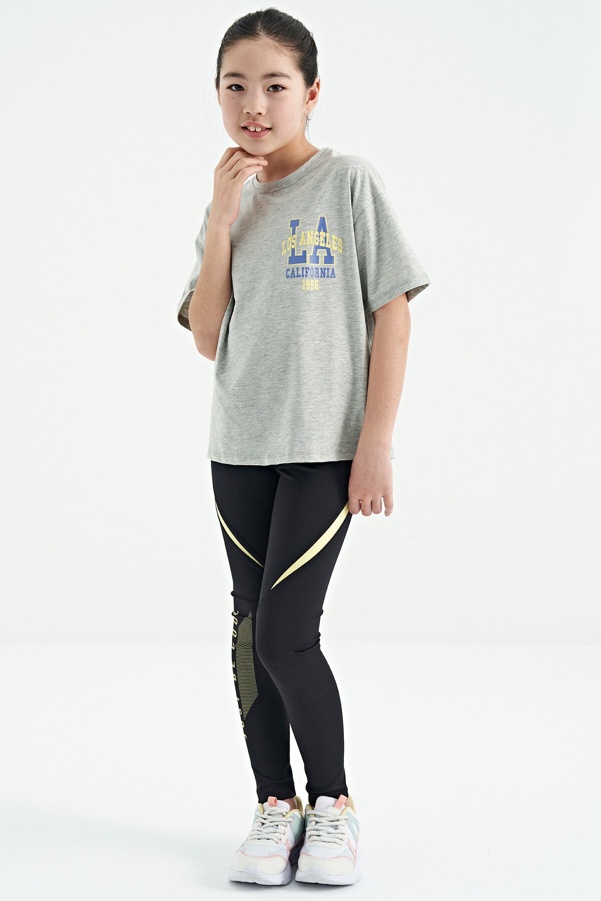 Grey Melange Print Round Neck Oversize Short Sleeve Girls' T-Shirt - 75127