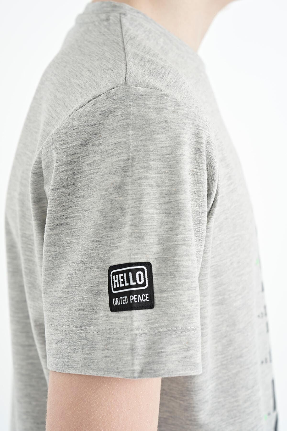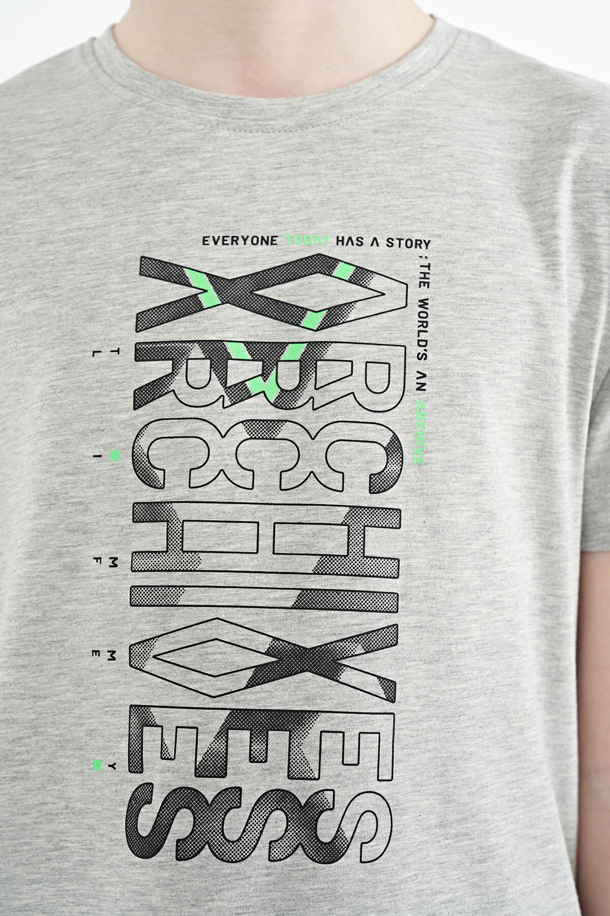 Grey Melange Round Neck Detailed O Collar Standard Cut Boys' T-Shirt - 11099
