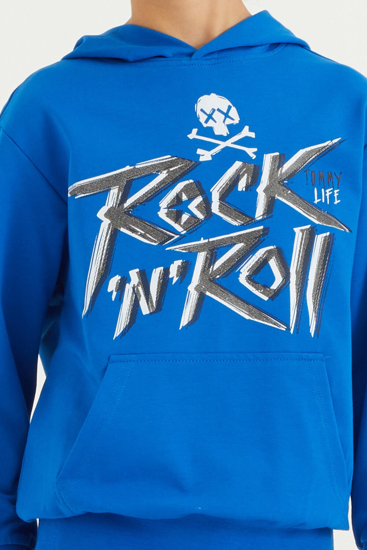 Hooded Standard Fit Boys' Sweatshirt with Kangaroo Pocket and Print Design - 11002
