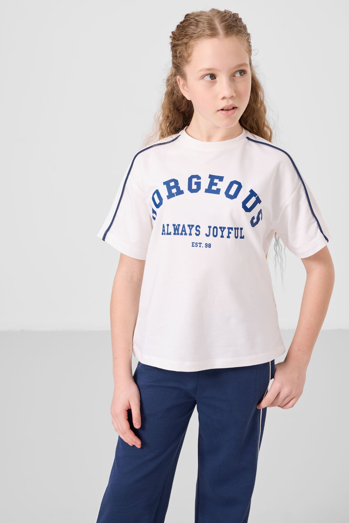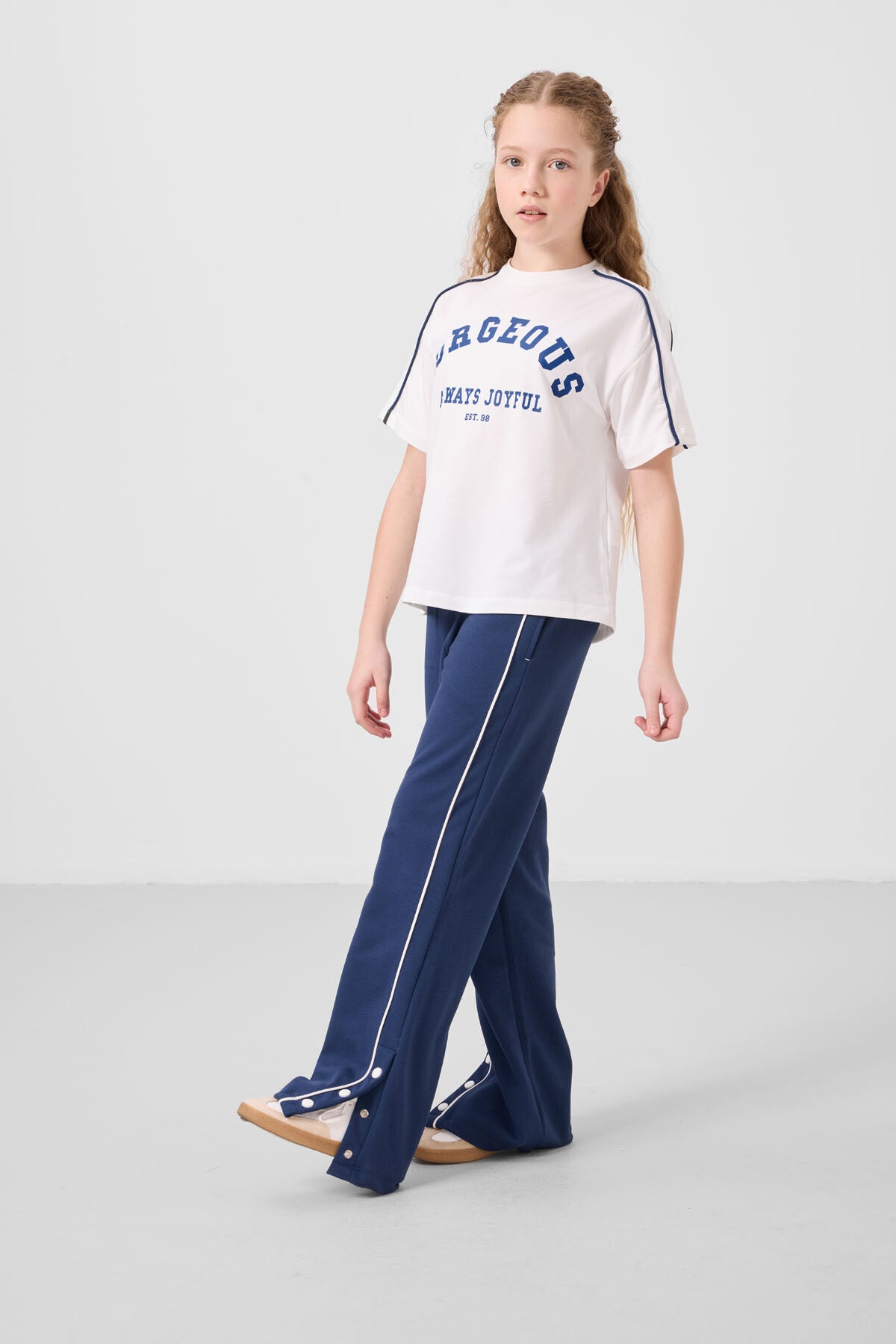 Round Collar Printed Wide Sleeve Standard Fit Girls Tracksuit Set