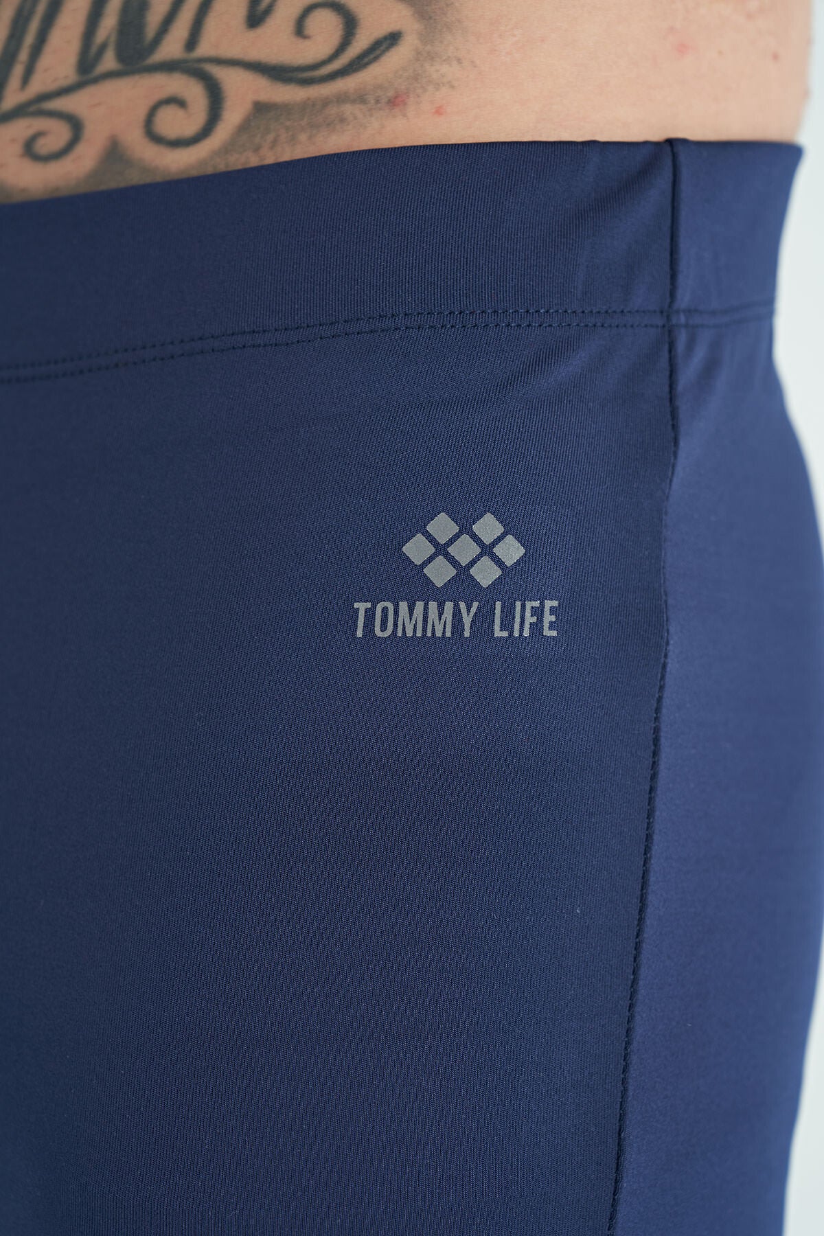 Indigo Back Ankle Print Detailed High Waist Slim Fit Active Sports Men's Tights - 84988