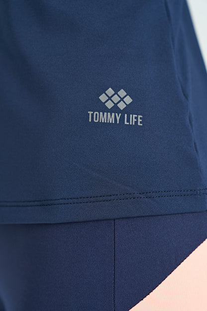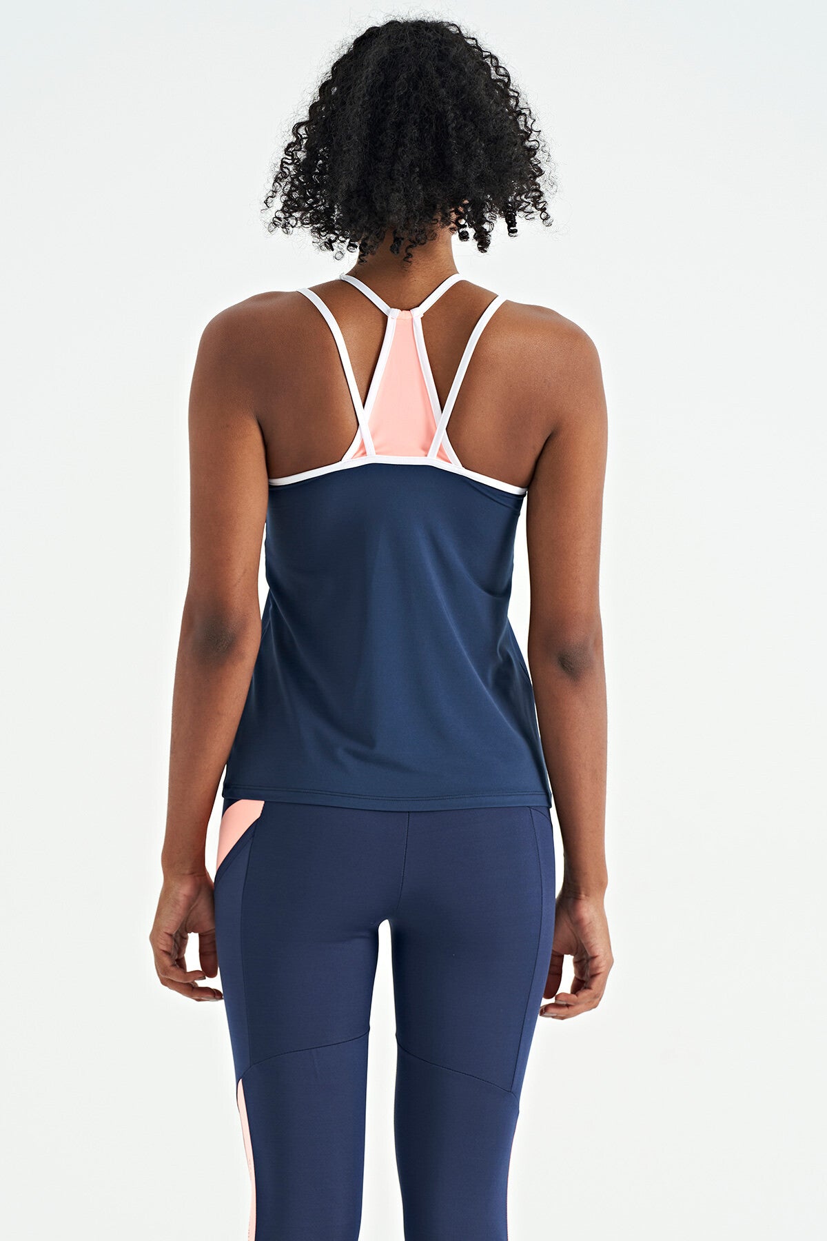 Indigo Double Strap Back Detailed Standard Fit Women's Sports Singlet - 97258