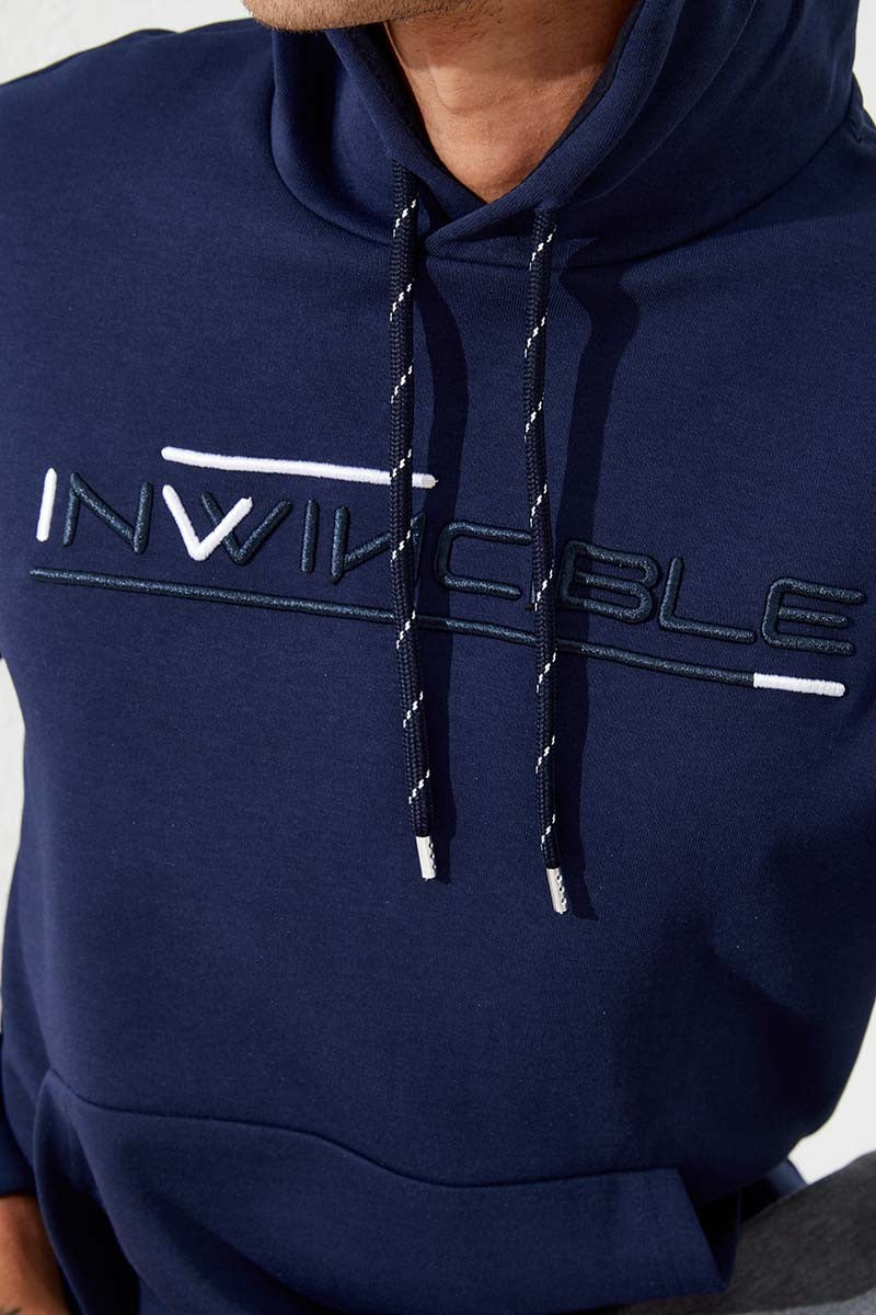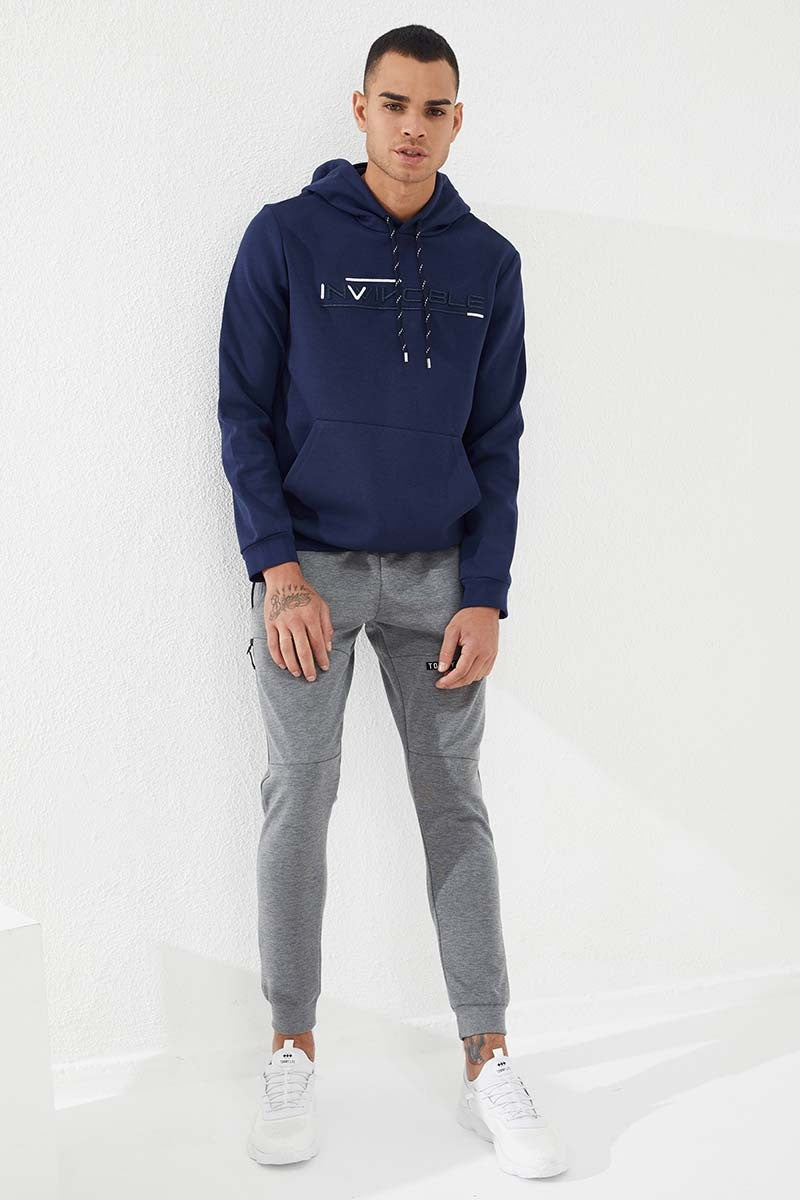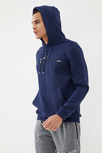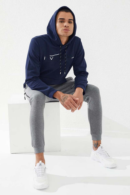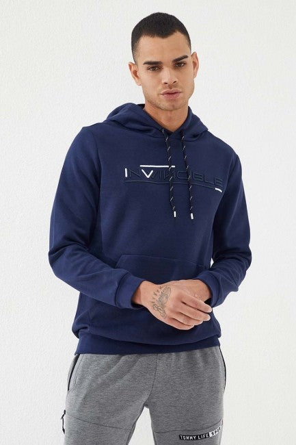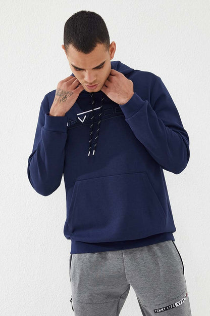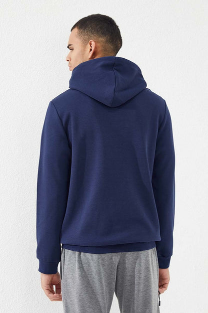 Indigo Kangaroo Pocket Standard Fit Hooded Men's Sweatshirt - 87883