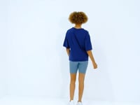 Indigo O Collar Printed Detailed Oversize Short Sleeve Women's T-Shirt - 97263