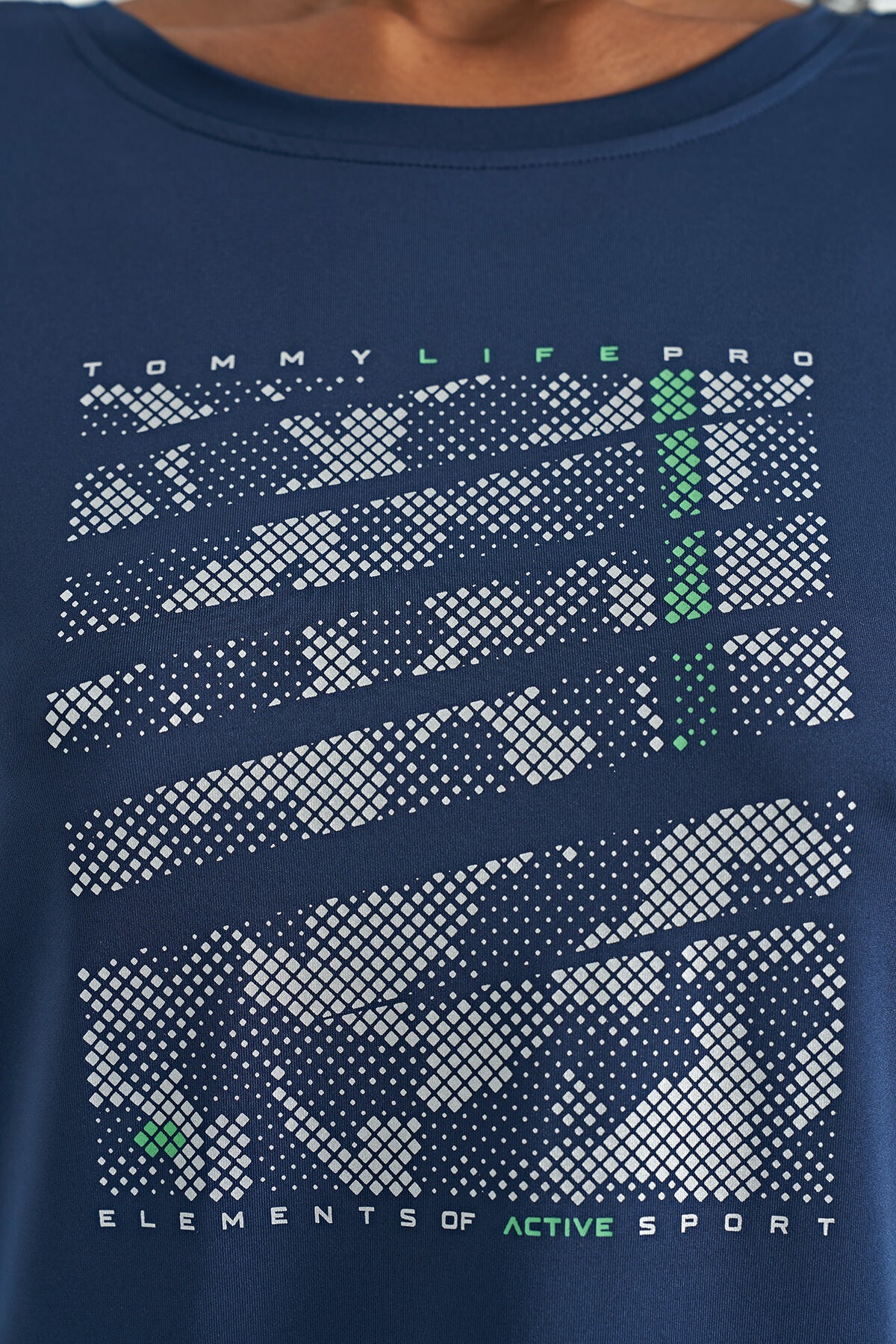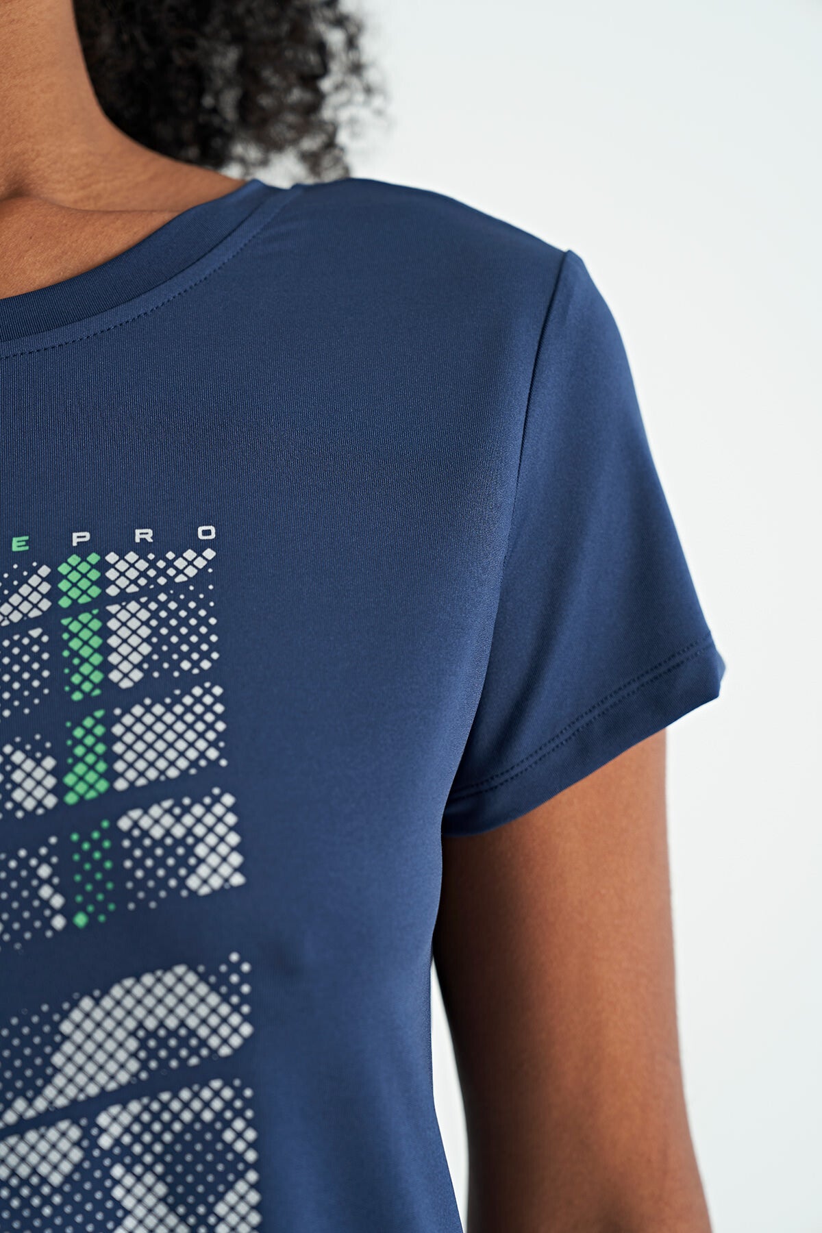 Indigo Pre-Printed Back V-Neck Standard Fit Short Sleeve Women's Sports T-Shirt - 97264