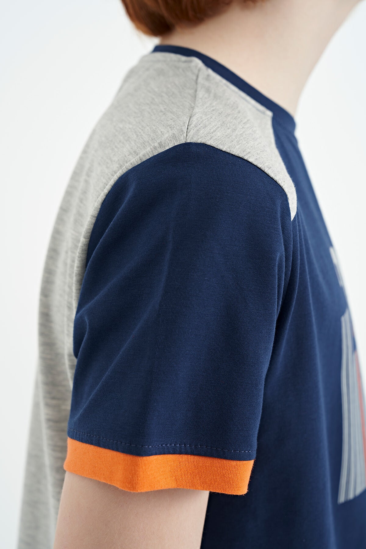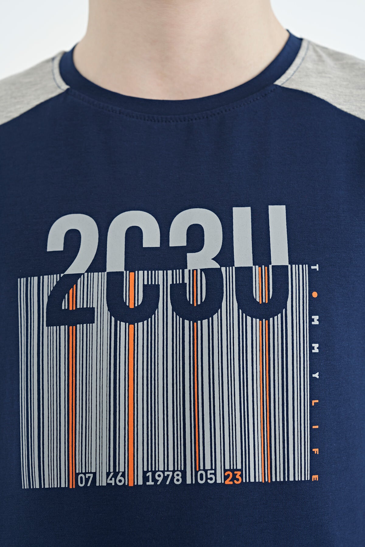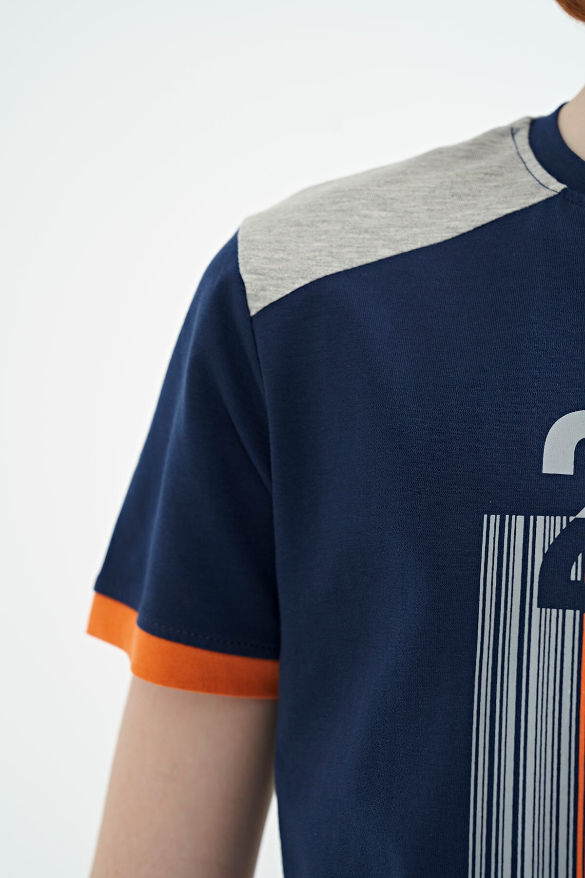 Indigo Print Detailed O Collar Standard Cut Boys' T-Shirt - 11157