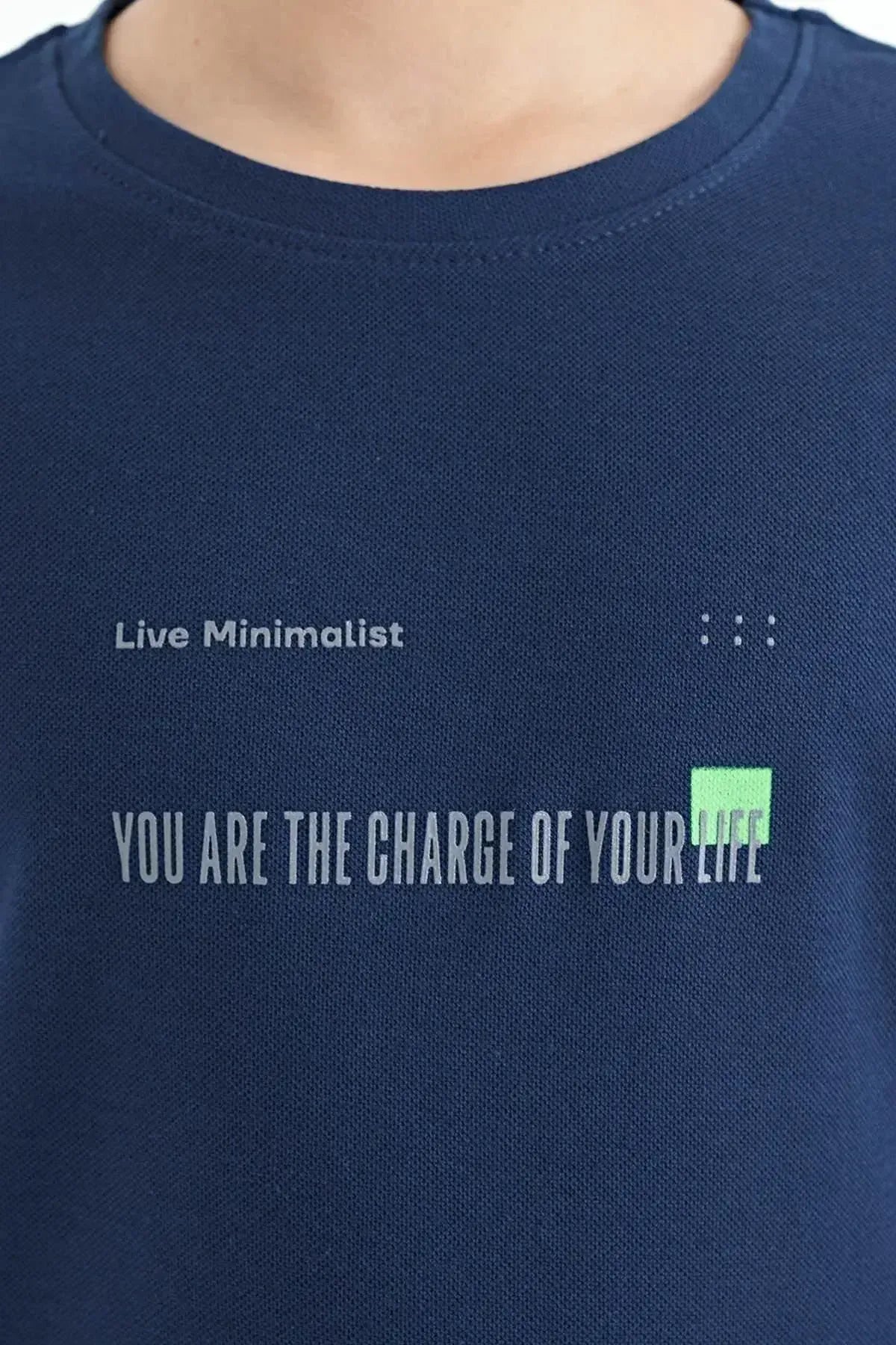 Indigo Print Detailed O Collar Standard Fit Men's Kids T-Shirt - 11117