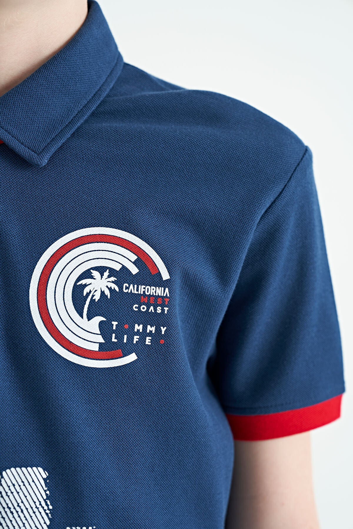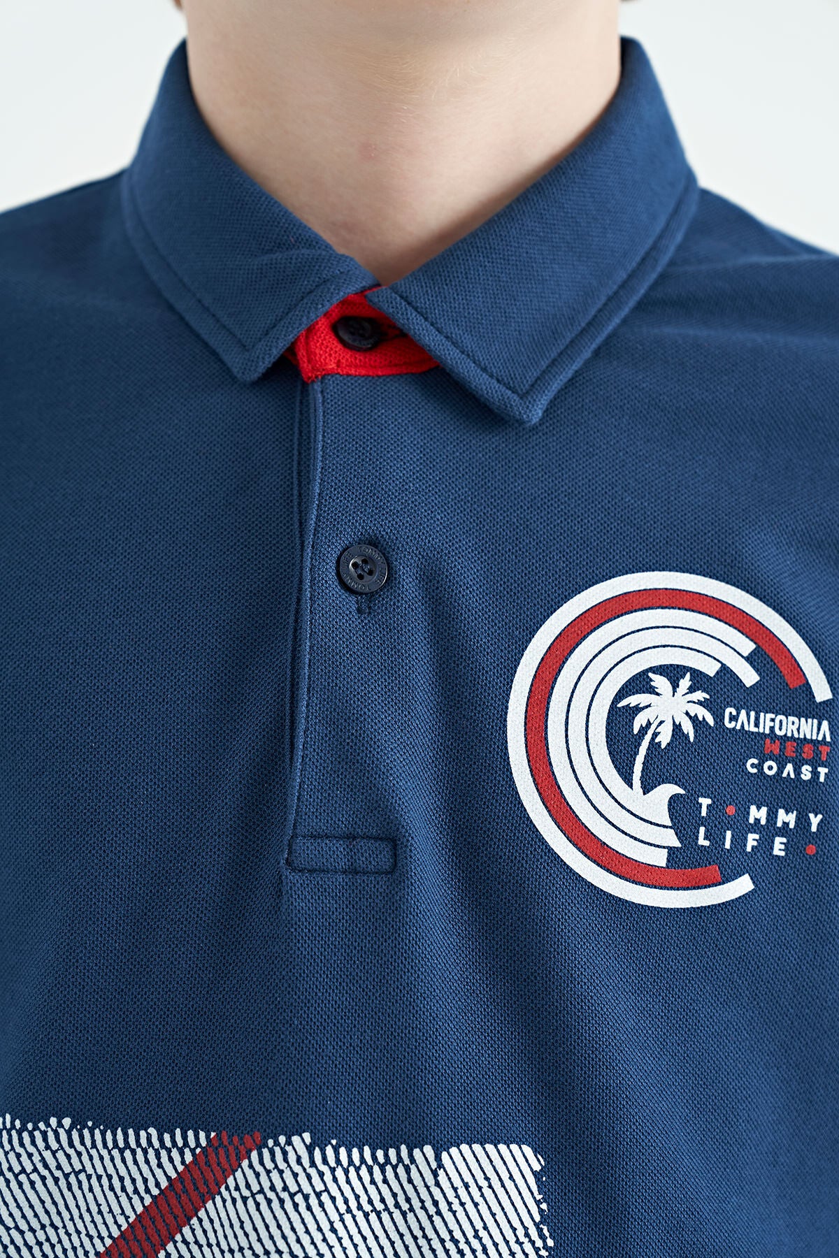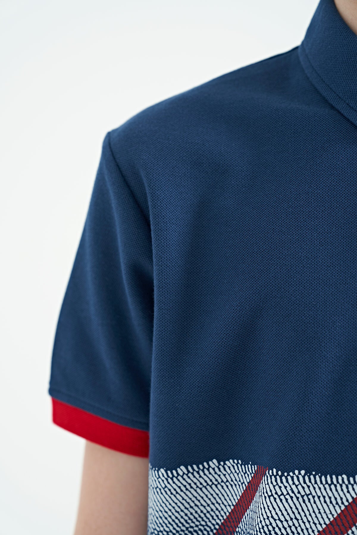Indigo Print Detailed Polo Collar Standard Fit Boys' T-Shirt - 11094