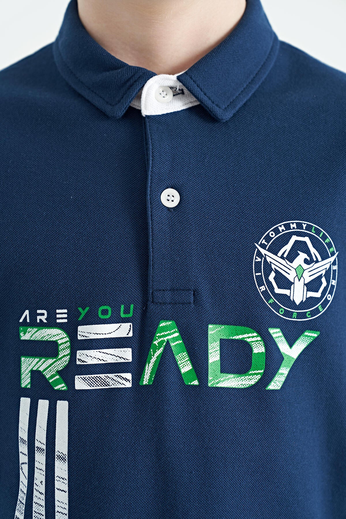 Indigo Print Pattern Standard Fit Polo Collar Boys T-Shirt - 11143