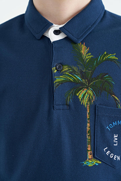 Indigo Printed Pocket Detailed Standard Fit Polo Collar Boys T-Shirt - 11144