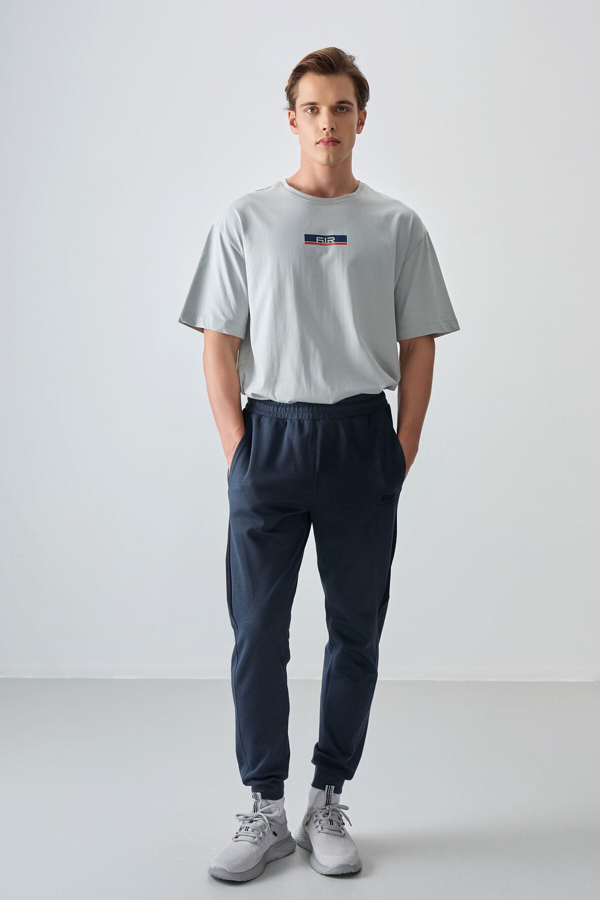 Indigo Textured Surface Standard Fit Embroidered Men's Tracksuit Bottom - 82126