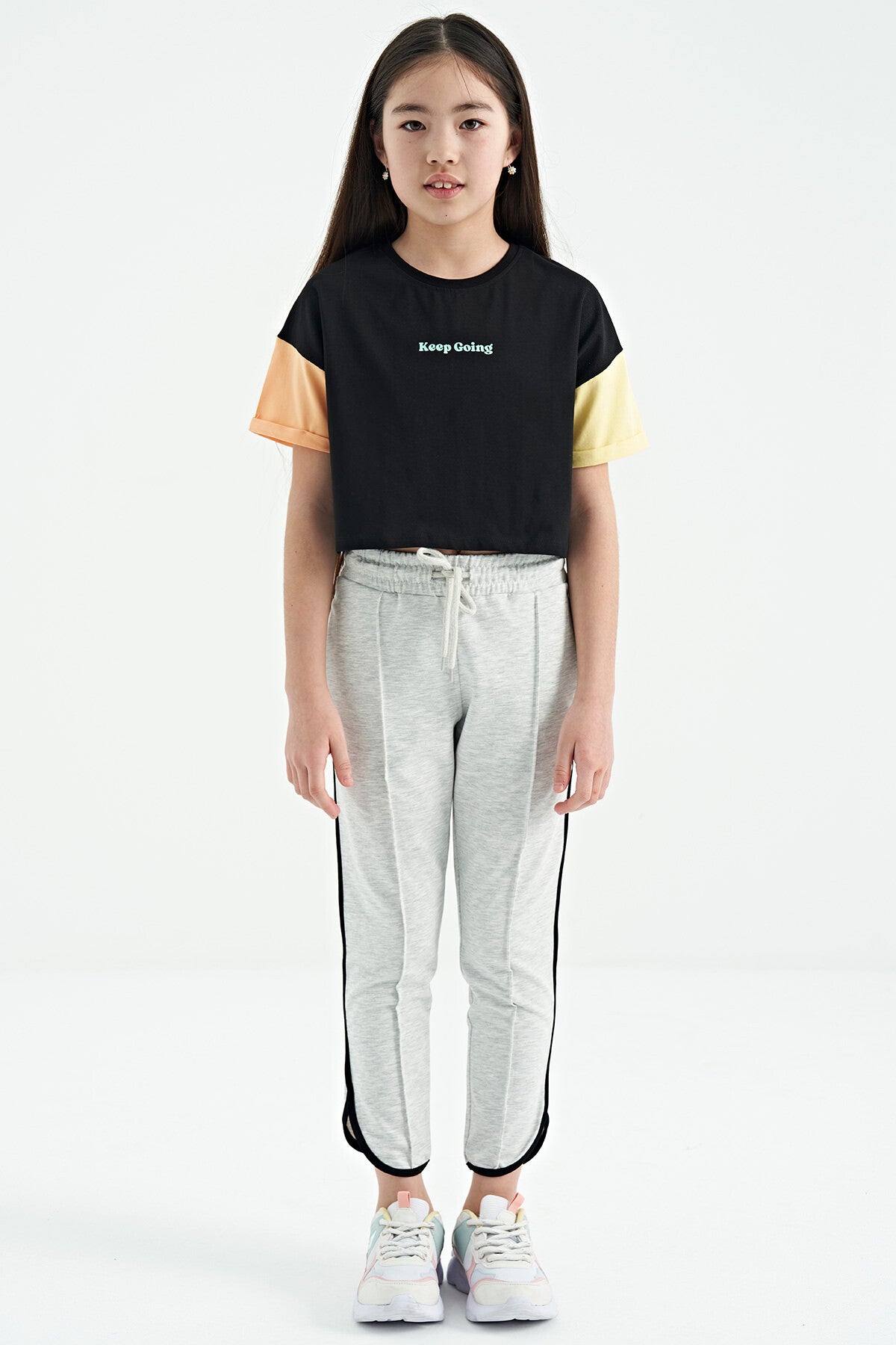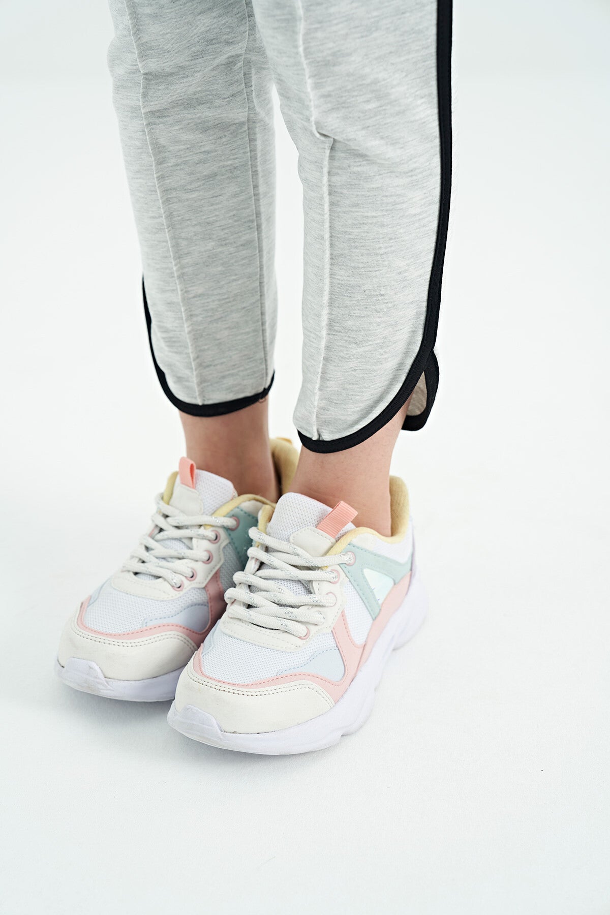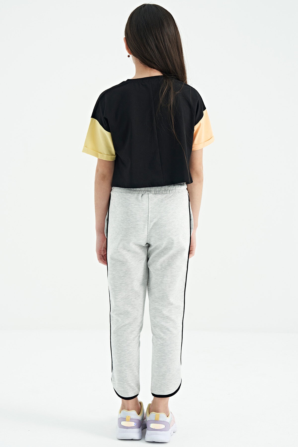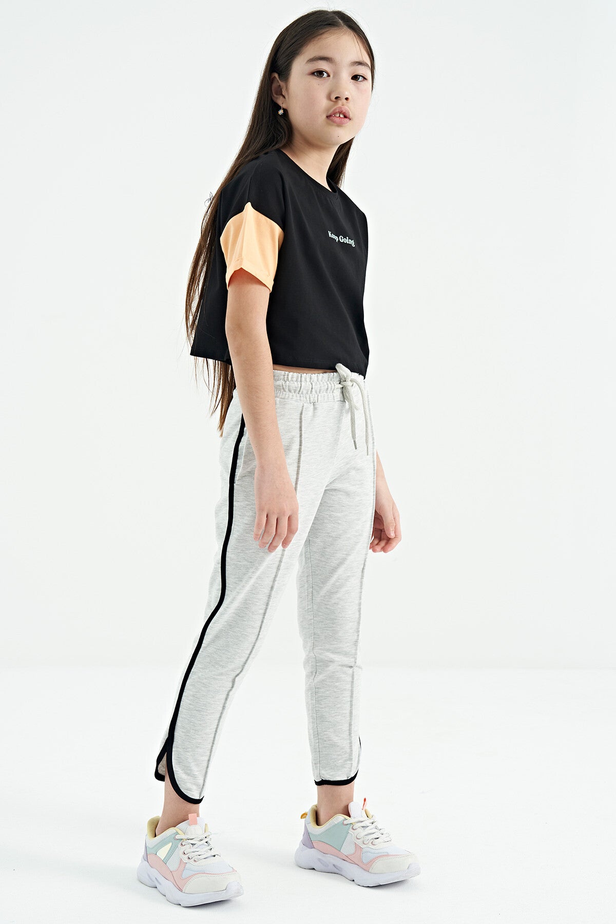 Light Grey Detailed Laced Front Wide-Legged Girls' Tracksuit Bottom - 75124