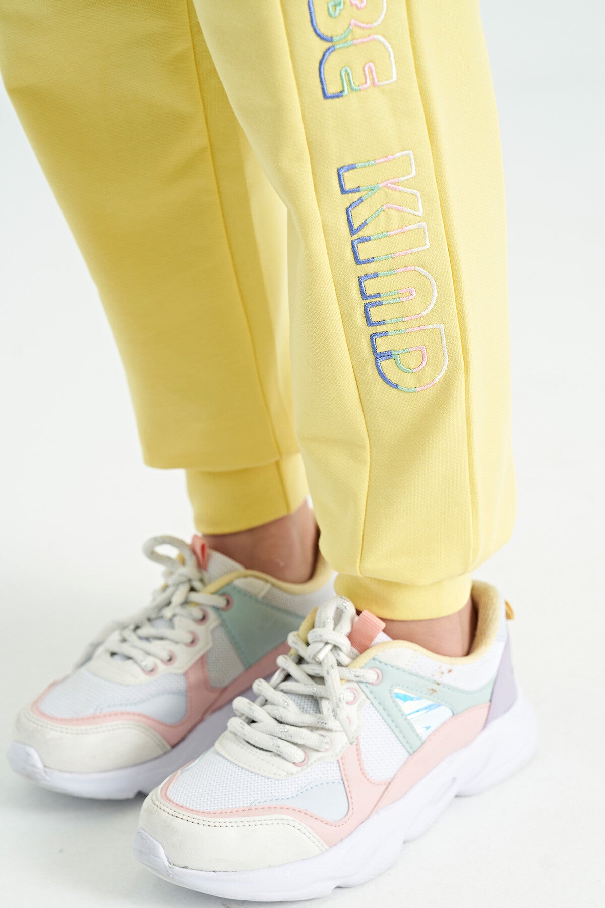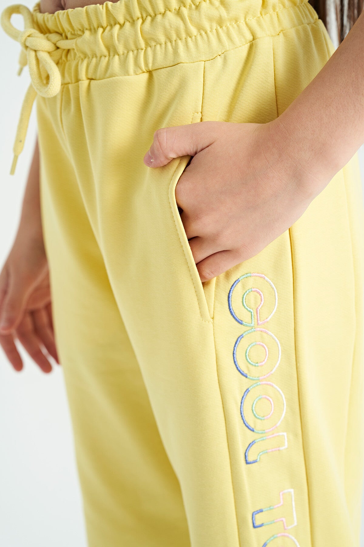 Lemon Side Print Embroidered Laced Standard Fit Jogger Girls' Tracksuit Bottom - 75123