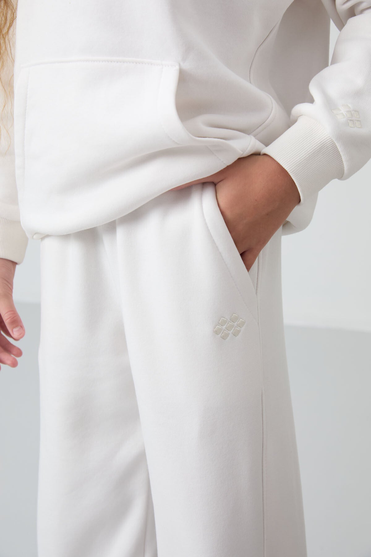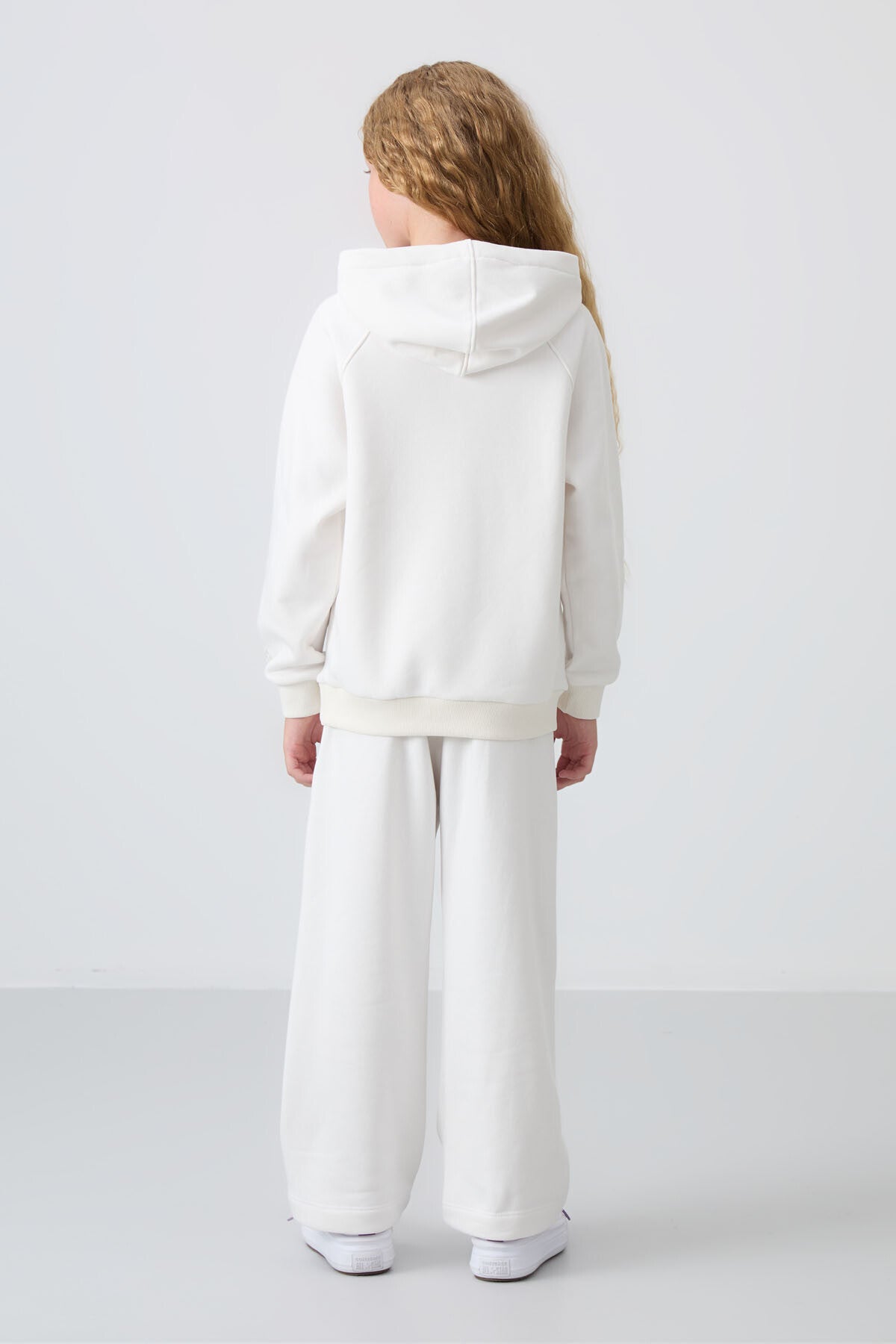 Light Beige Cotton Fleece-Lined Soft Textured Standard Fit Embroidered Girls' Tracksuit Set - 75162