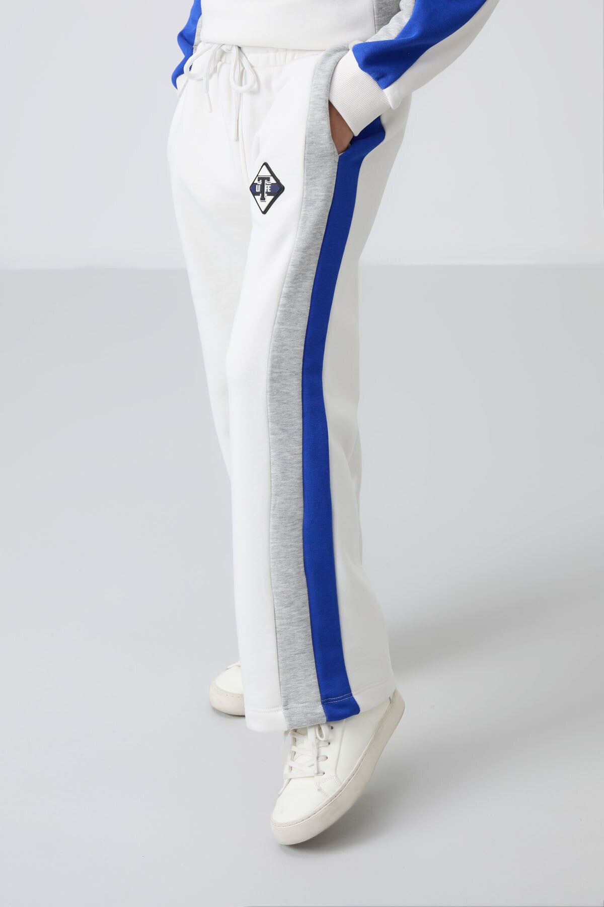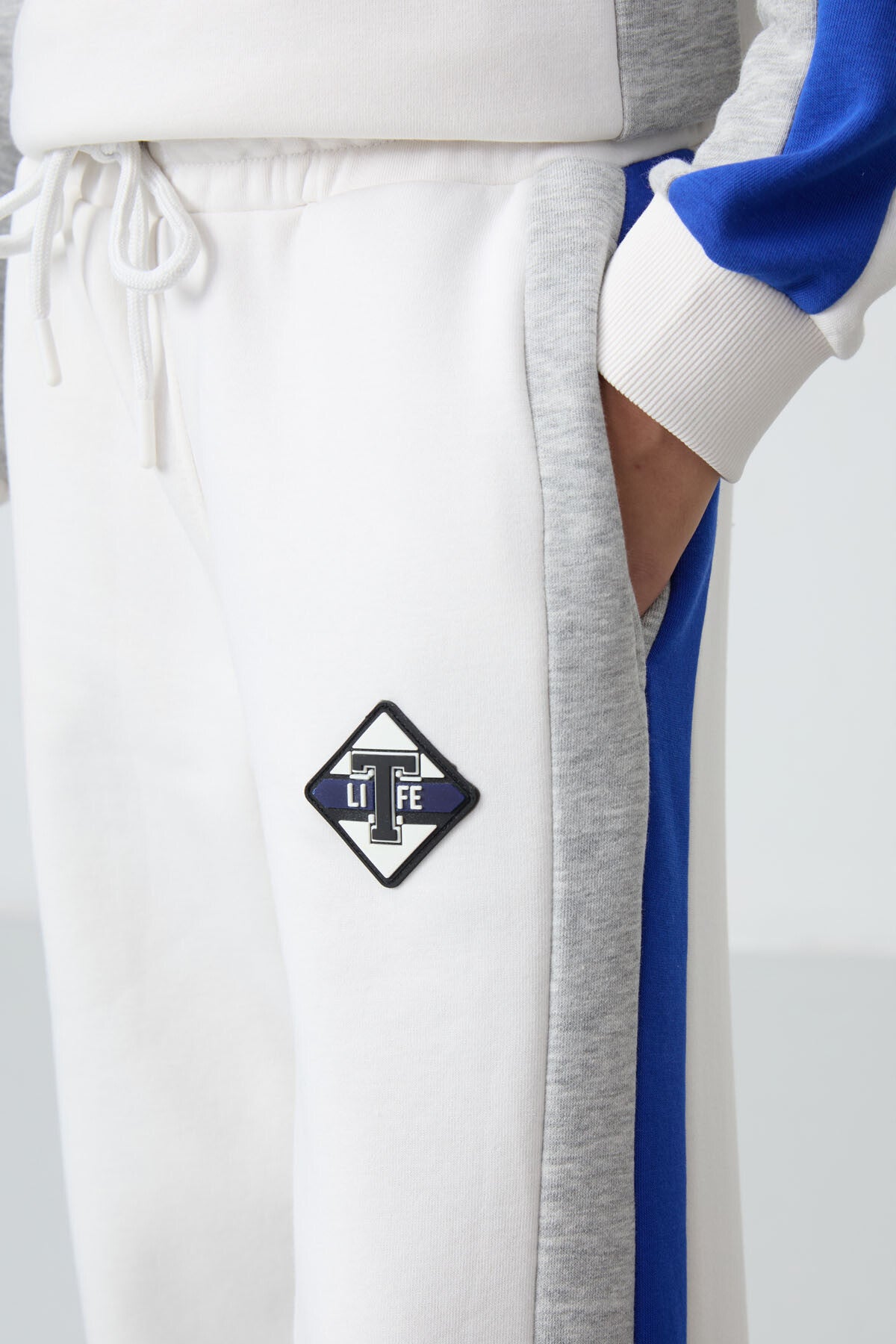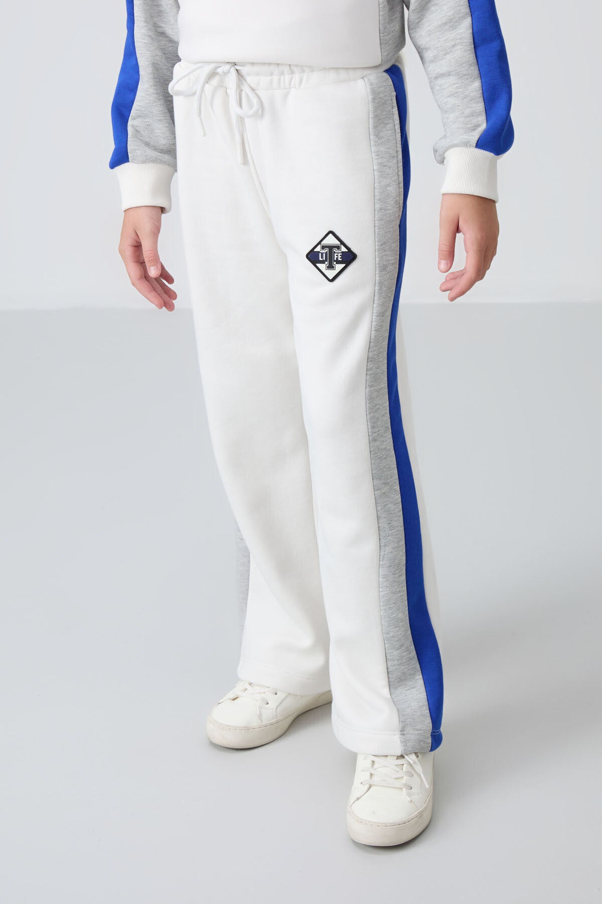 Light Beige Cotton Fleece-Lined Soft Textured Standard Fit Printed Girls' Tracksuit Set - 75165