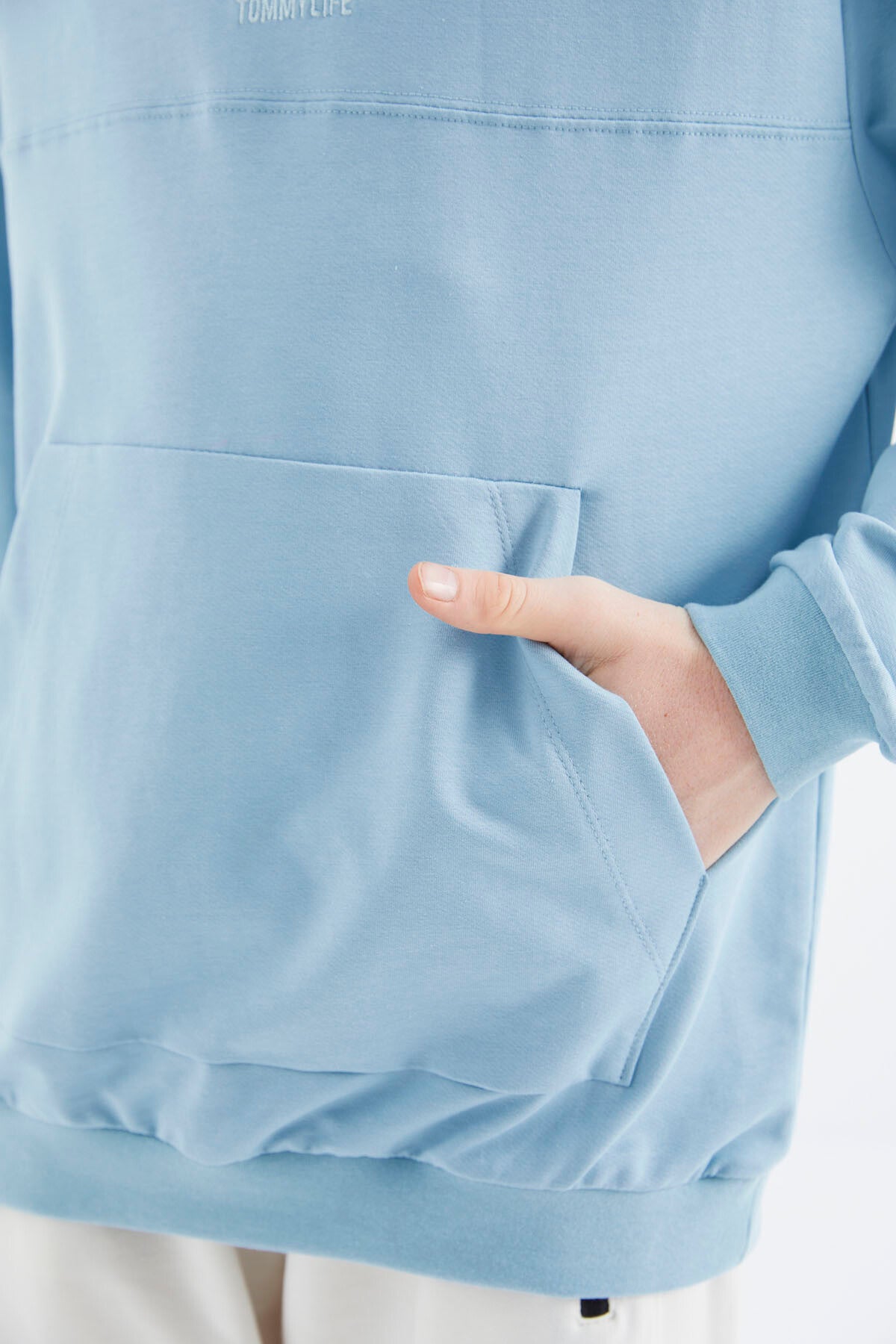 Light Blue Basic Hooded Boys' Sweatshirt - 11181