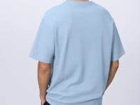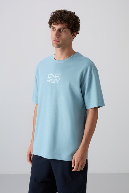 Light Blue Cotton Thick Textured Surface Oversize Fit Printed Men's T-Shirt - 88336