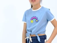 Light Blue Print Detailed O Collar Multicolor Tie Detailed Girl's T-Shirt - 75113