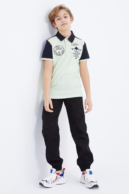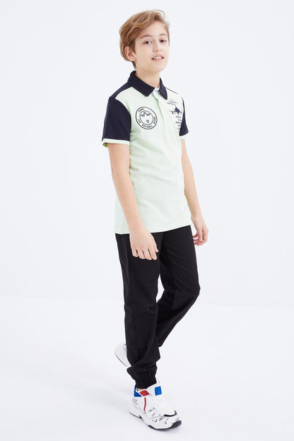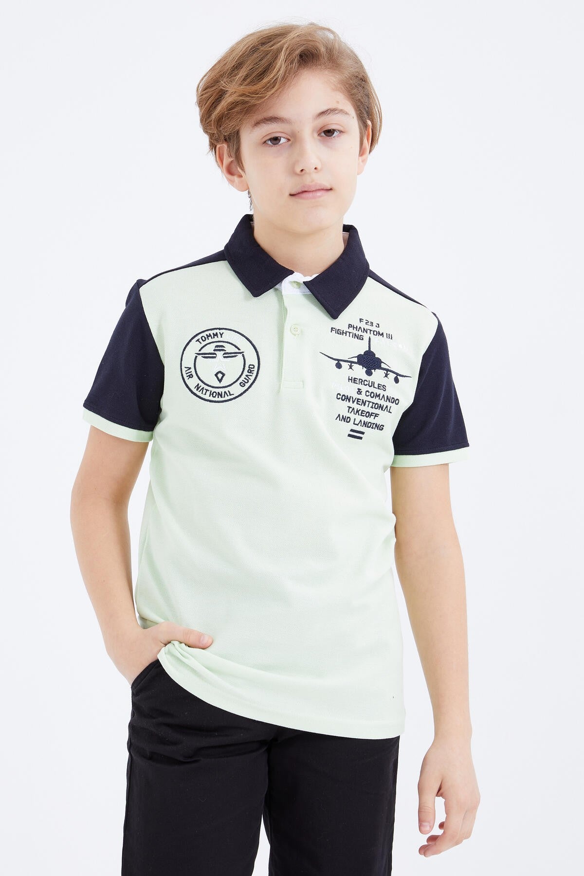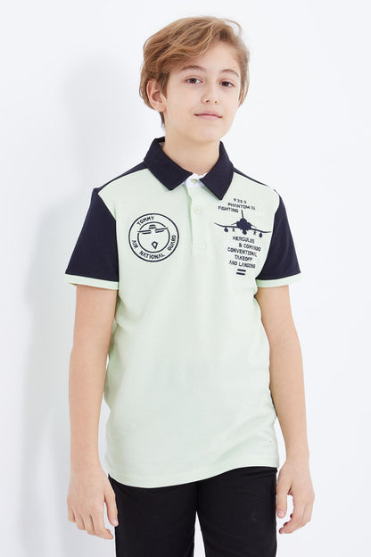 Light Green Embroidered Detailed Short Sleeve Polo Collar Boys' T-Shirt - 10906