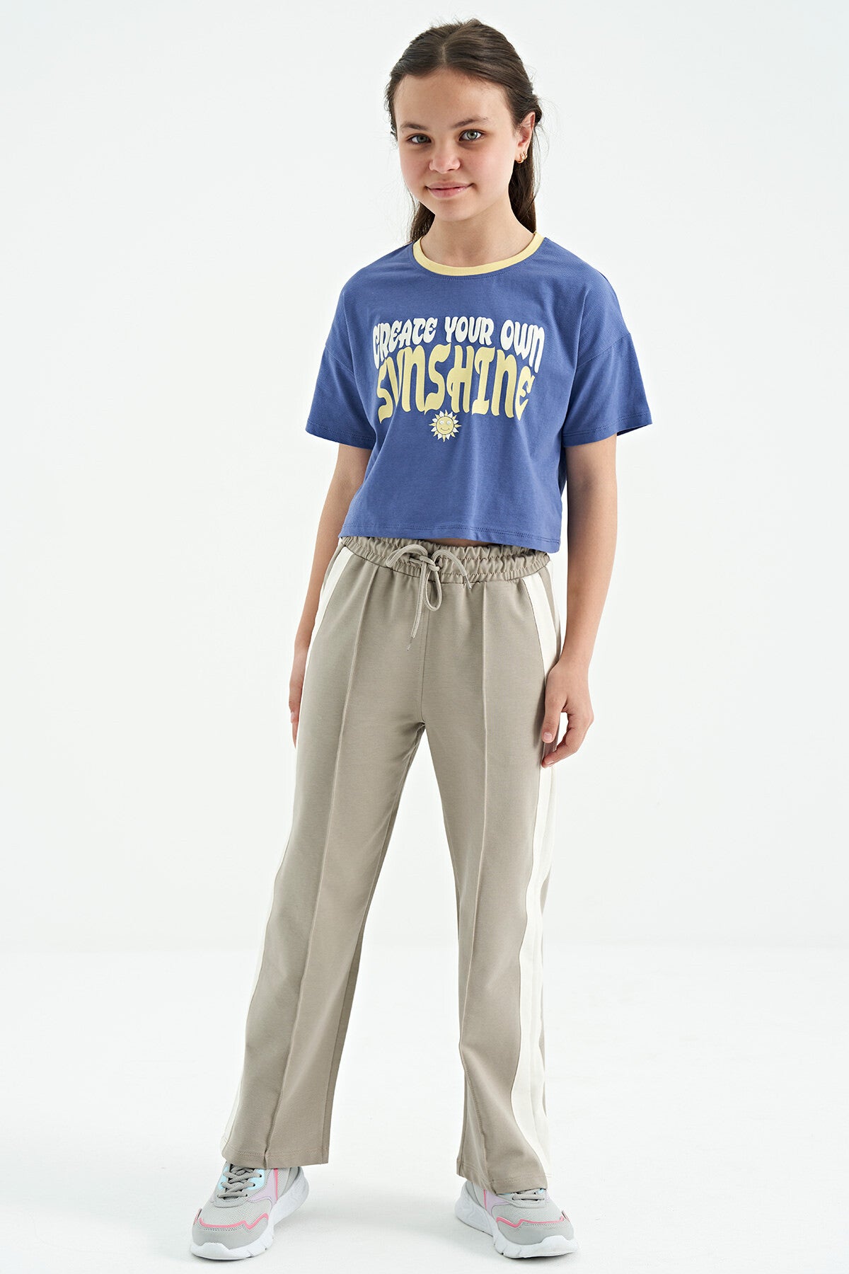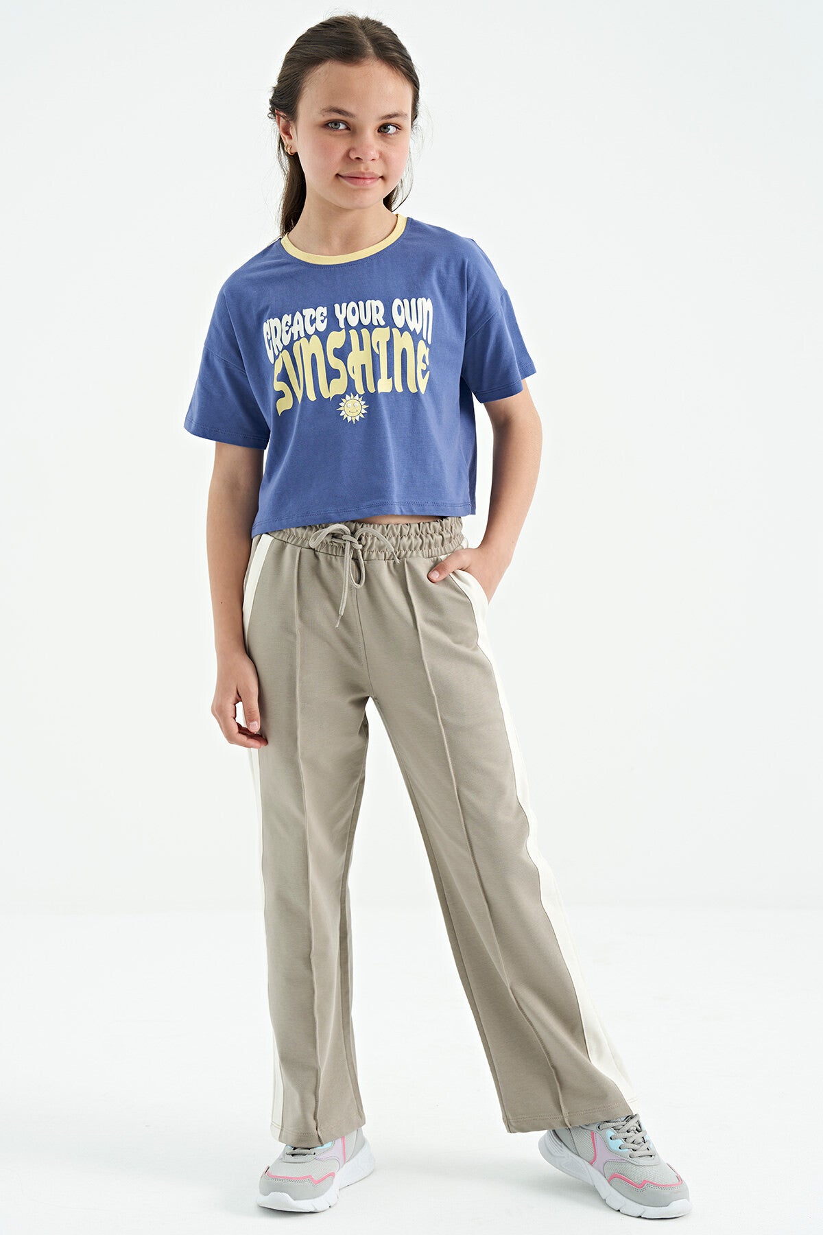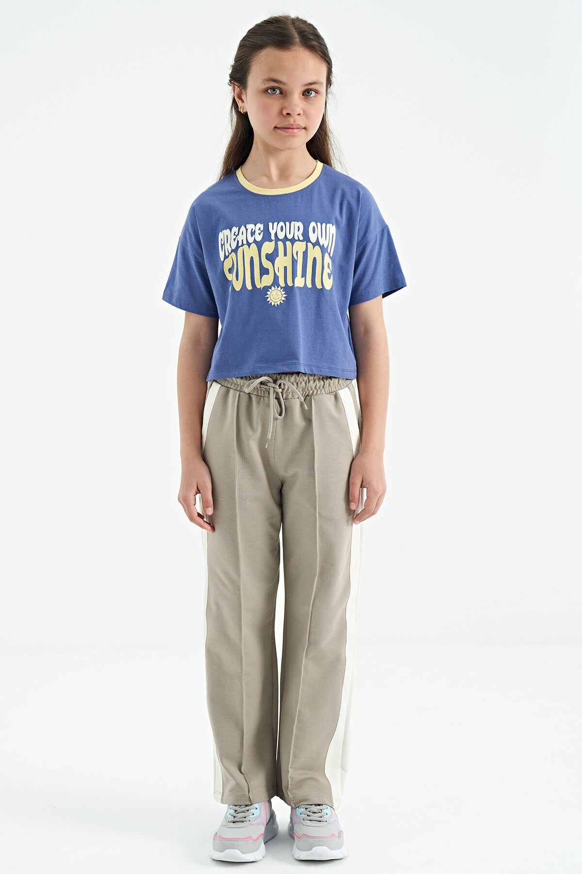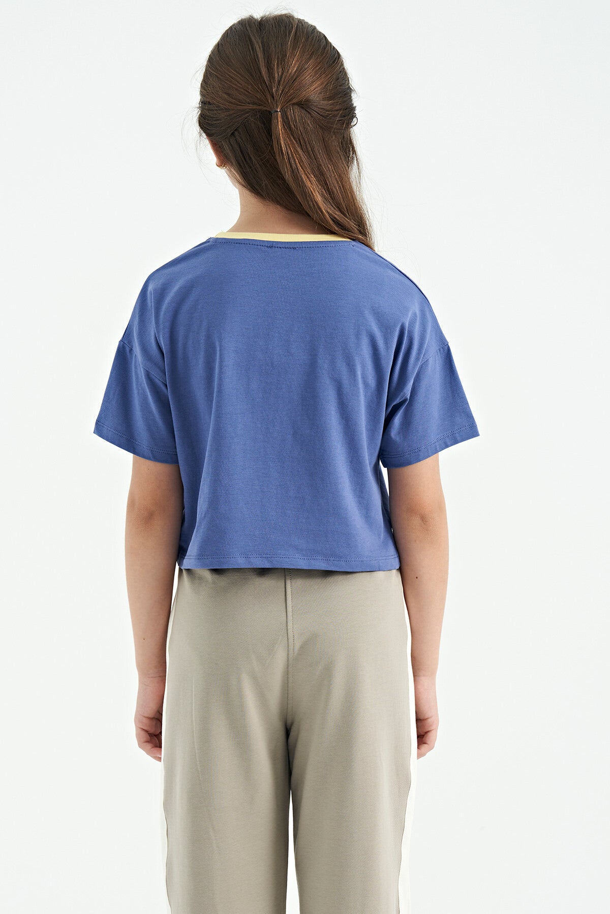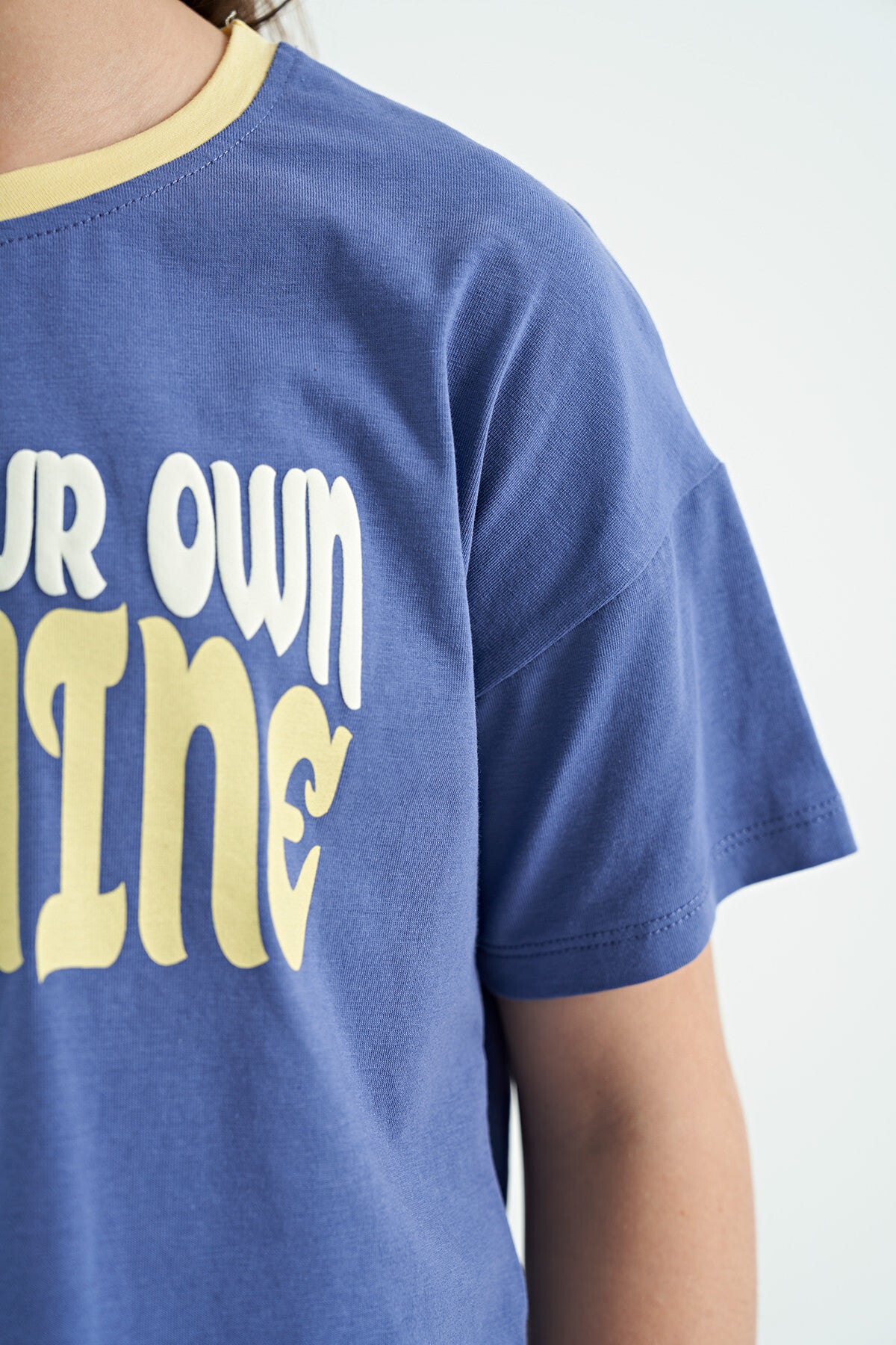 Light Purple Printed O Collar Oversize Short Sleeve Girls' T-Shirt - 75111