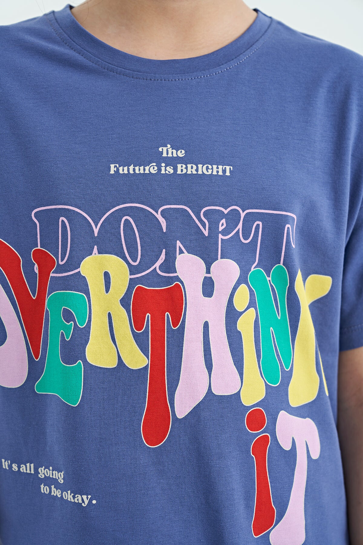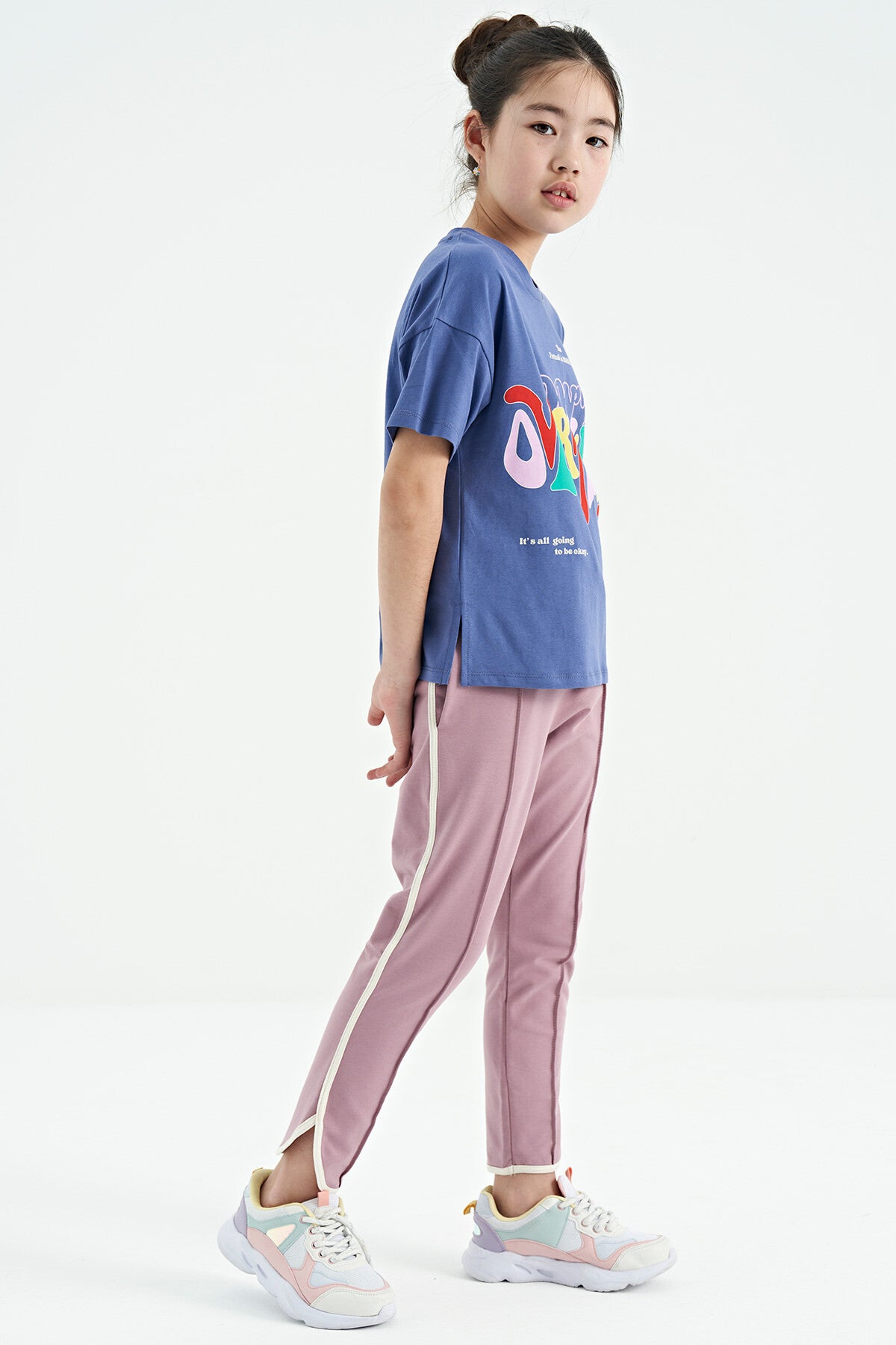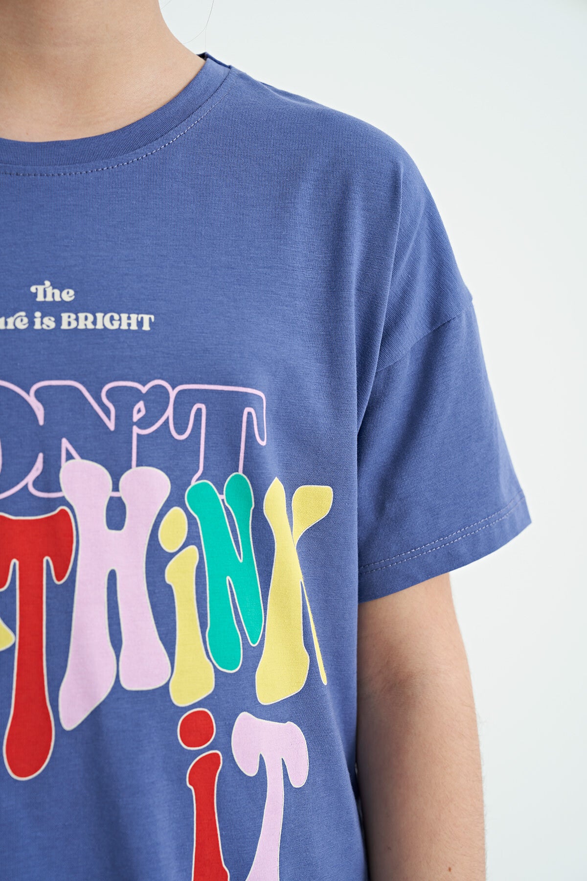 Light Purple Printed O Collar Oversize Short Sleeve Girls T-Shirt - 75112
