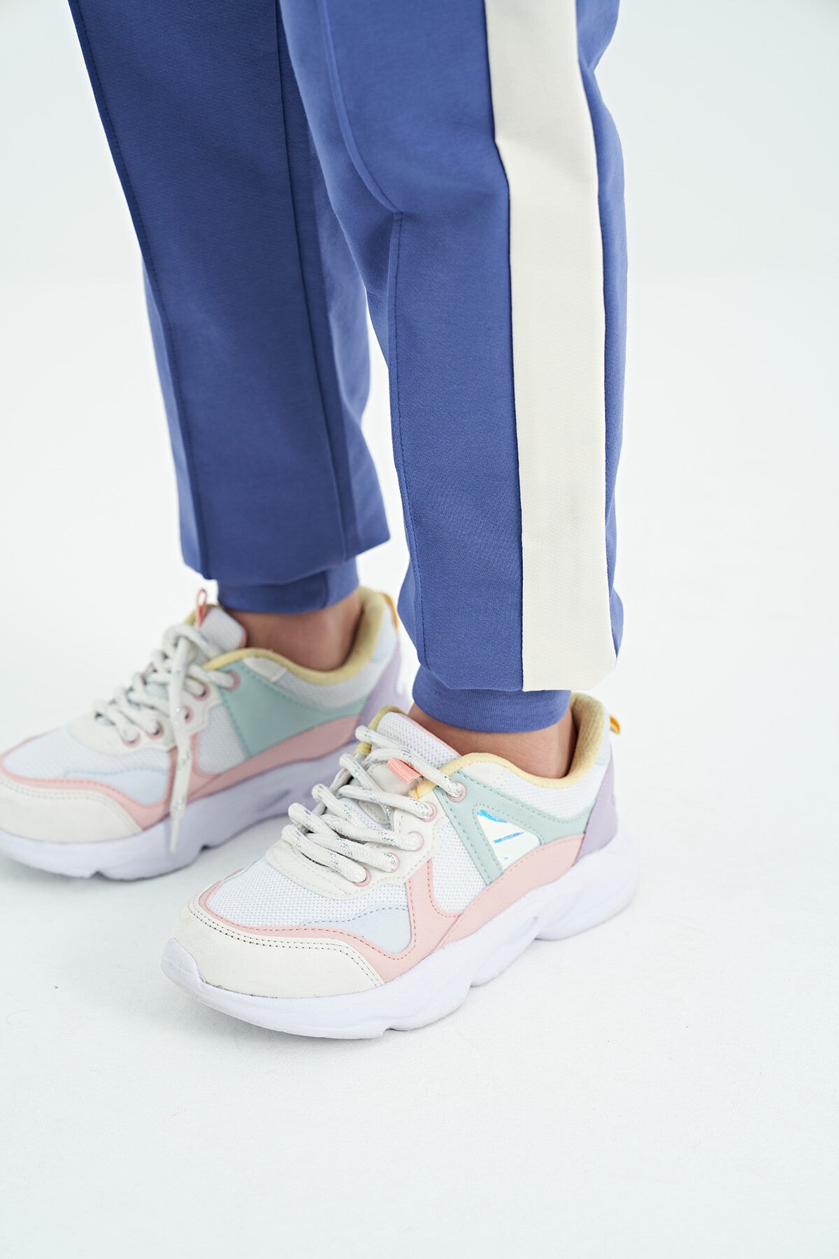 Light Purple Side Striped Hidden Zipper Pocket Detailed Jogger Girls' Tracksuit Bottom - 75122