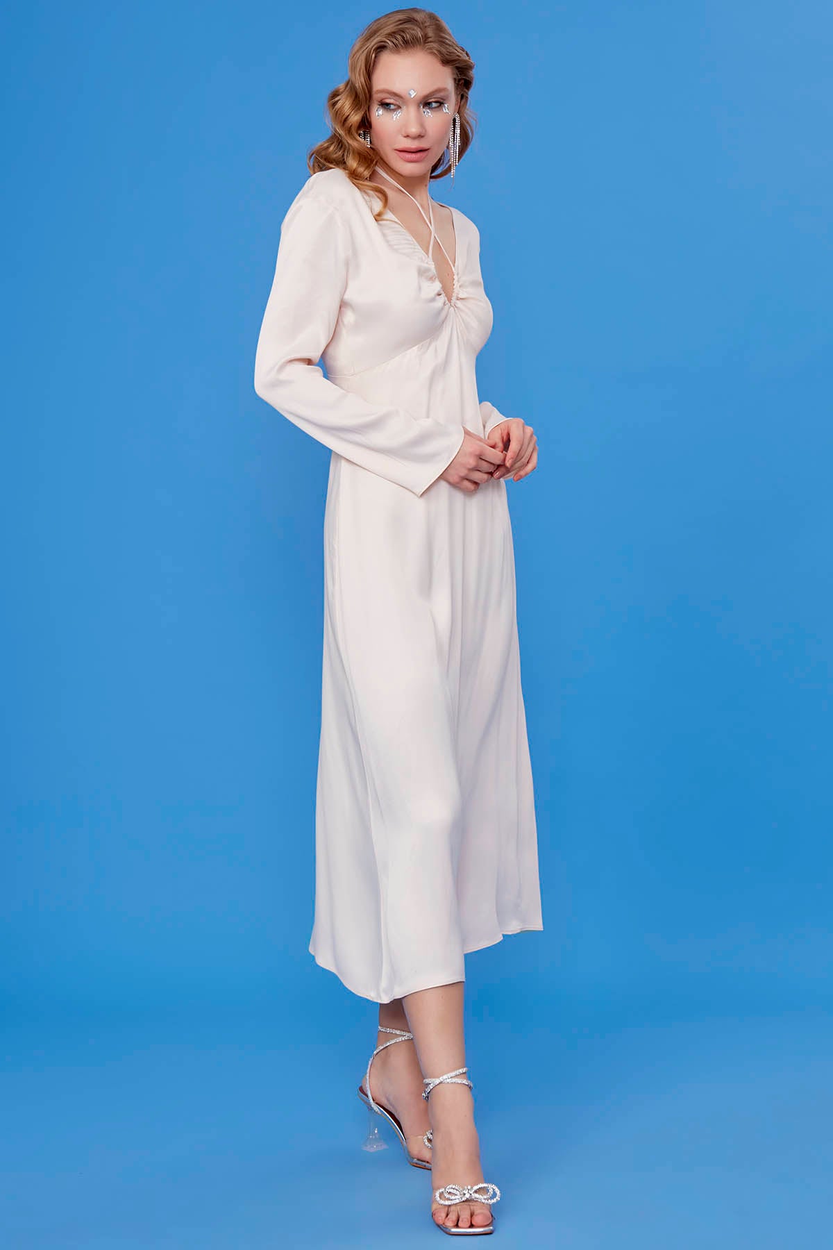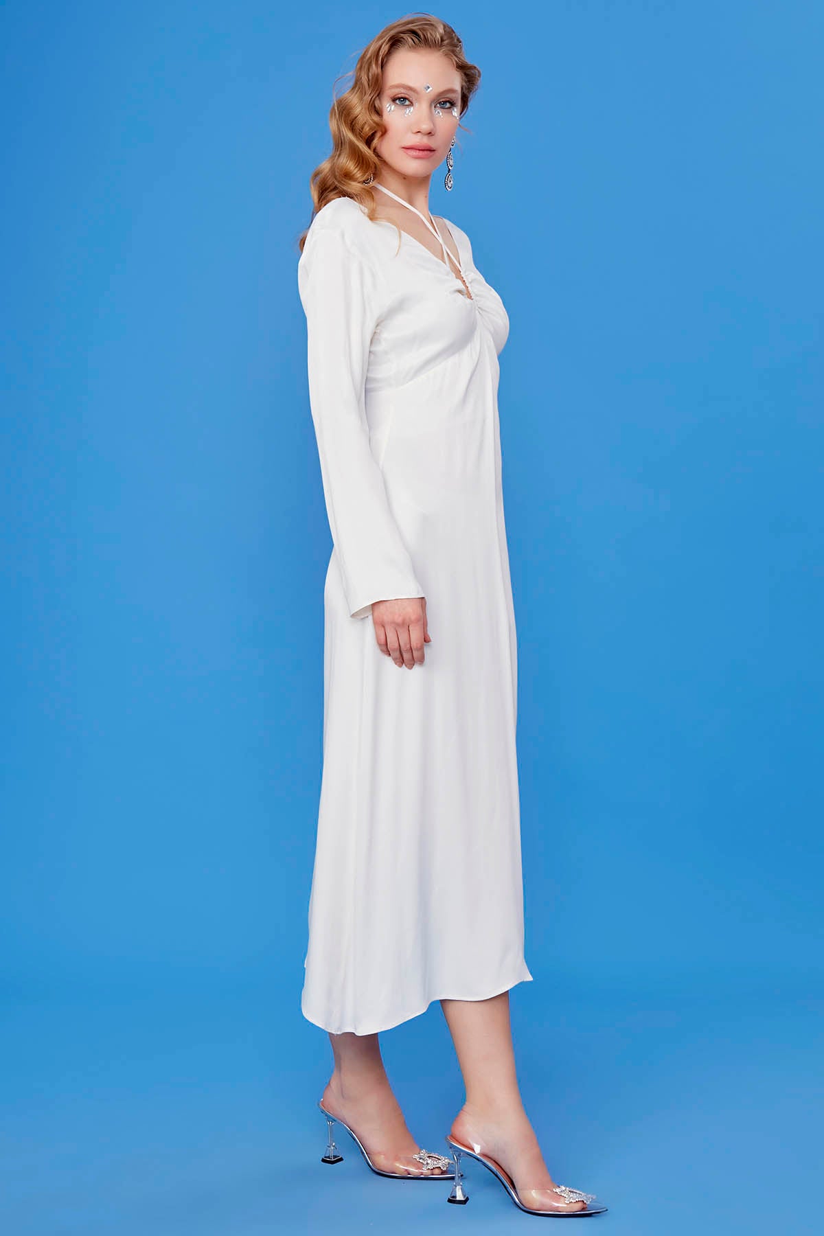 LONG SATIN DRESS WITH DEEP V CLEAVAGE