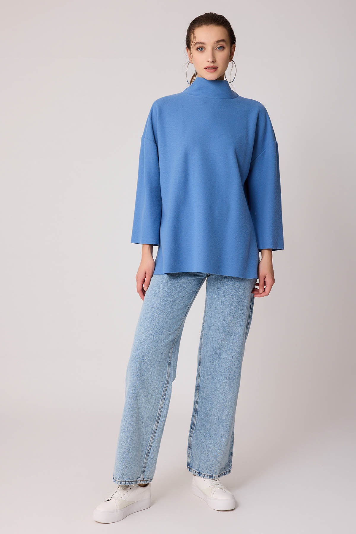 LOW SLEEVE SIDE SPLIT KNITTED COMFY BLOUSE