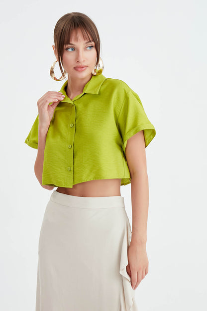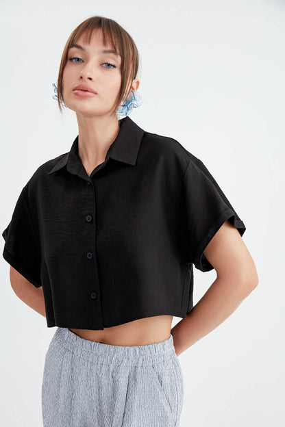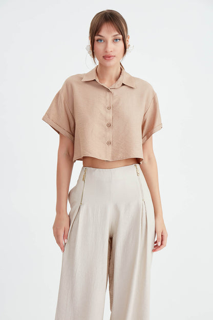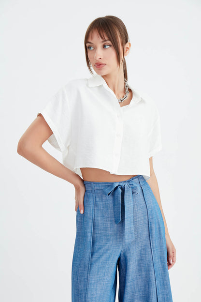 LOW SHOULDER CROP SHIRT