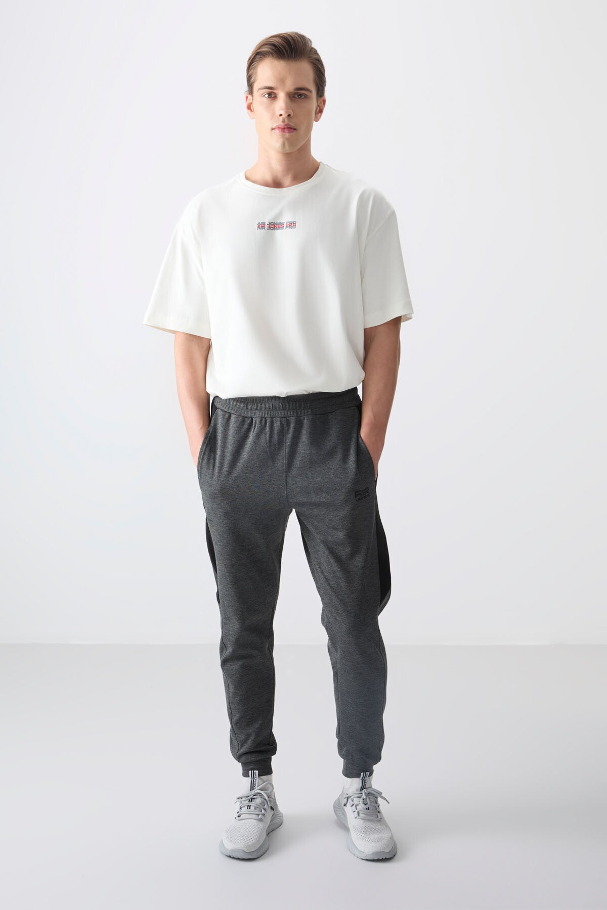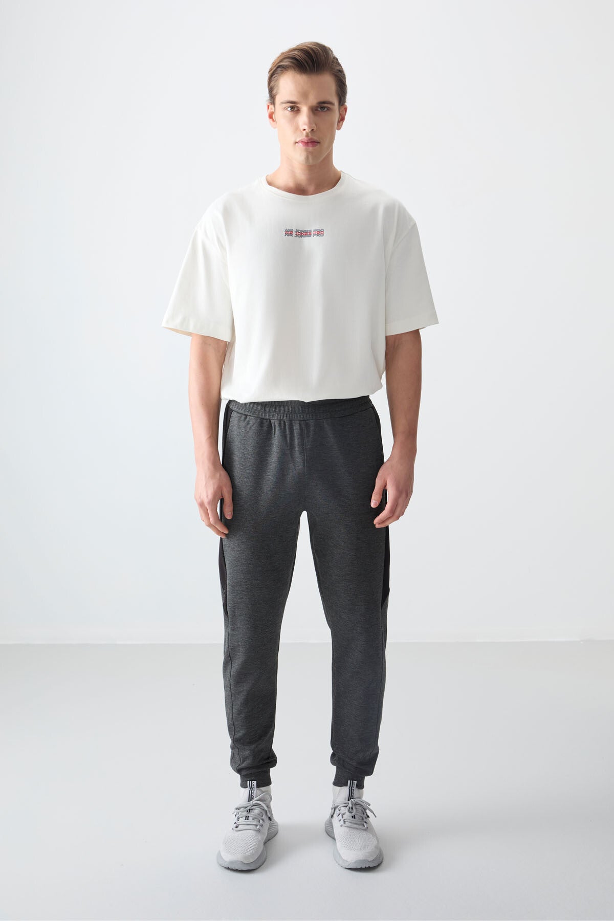 Melange Anthracite Textured Surface Standard Fit Embroidered Men's Tracksuit Bottom - 82126