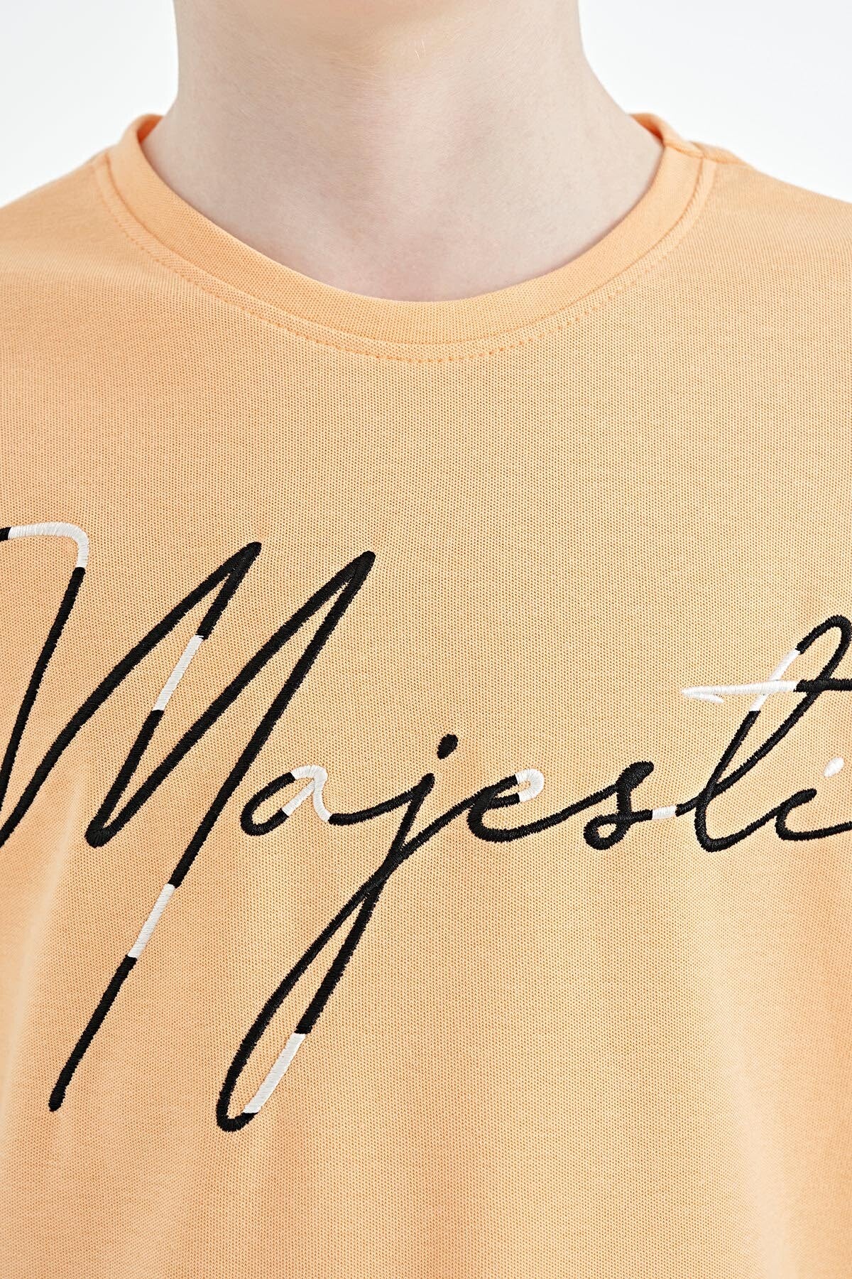 Melon Inner Front Embroidered O Collar Oversize Boys T-Shirt - 11147