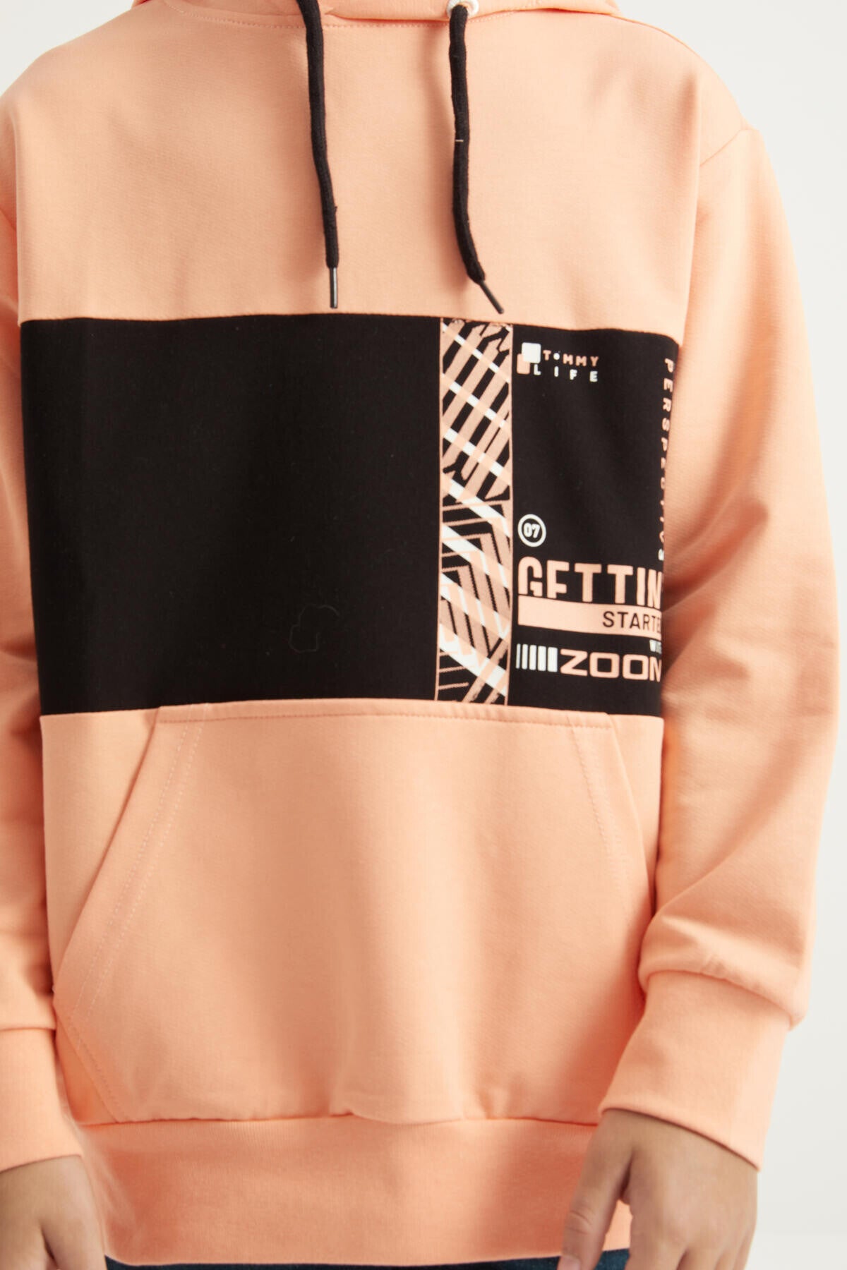 Melon Inside Embroidered Kangaroo Pocket Hooded Standard Fit Boys' Sweatshirt - 11010