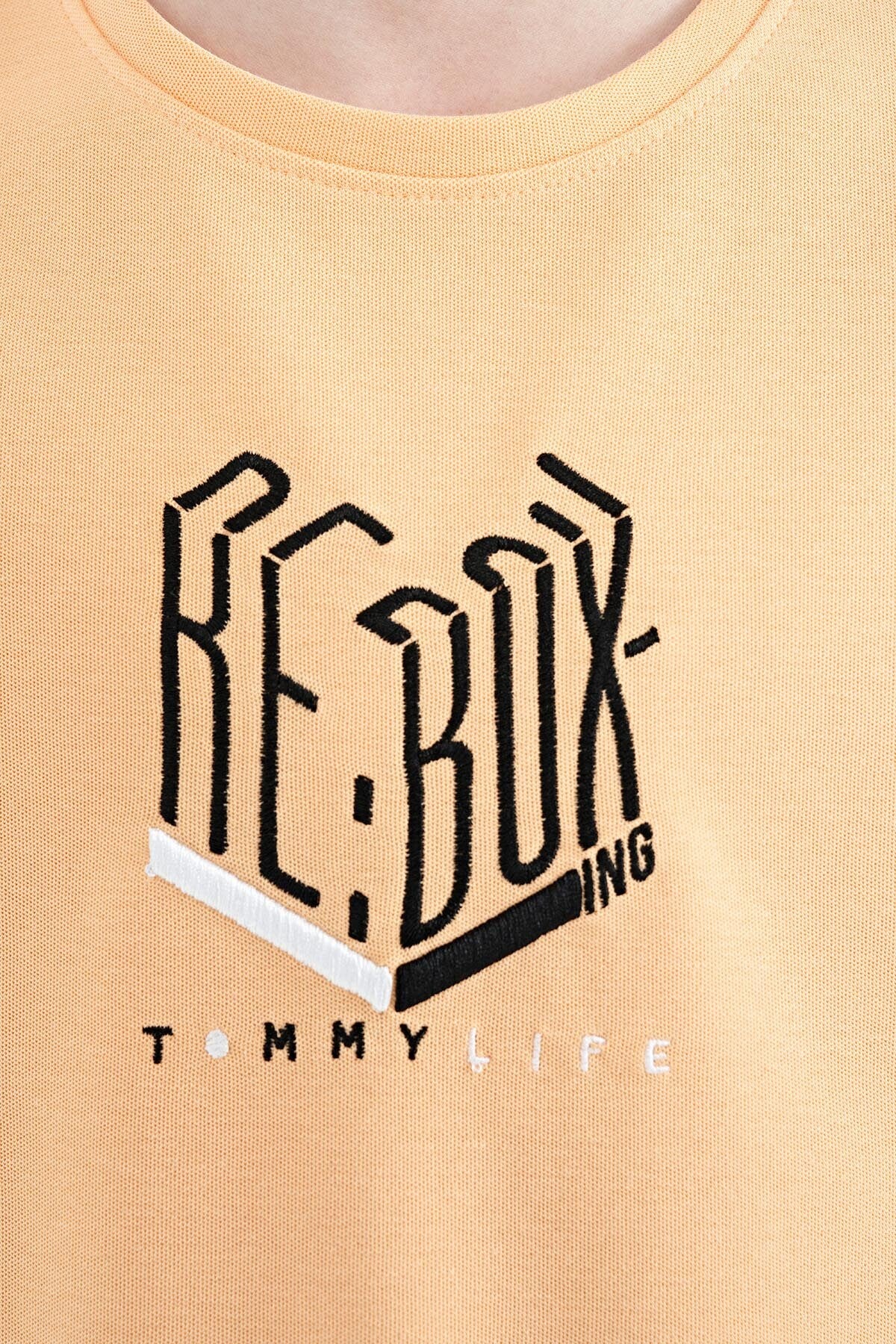 Melon Inside Letter Embroidered O Collar Oversize Boys T-Shirt - 11151