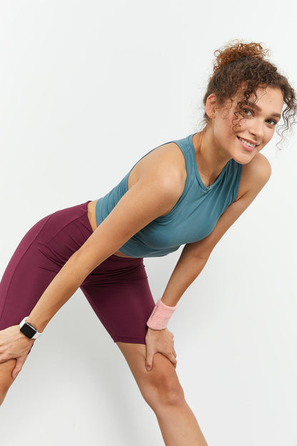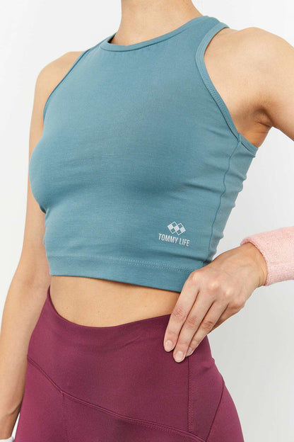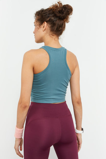 Mint Green Slim Fit Narrow Cut O Neck Women's Crop Top Tank - 97148