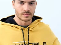 Mustard Kangaroo Pocket Standard Fit Hooded Men's Sweatshirt - 87883