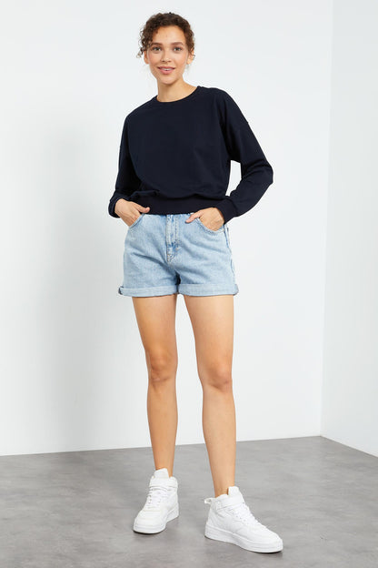 Navy Blue Basic Comfort Fit O-Neck Women's Sweatshirt - 97114