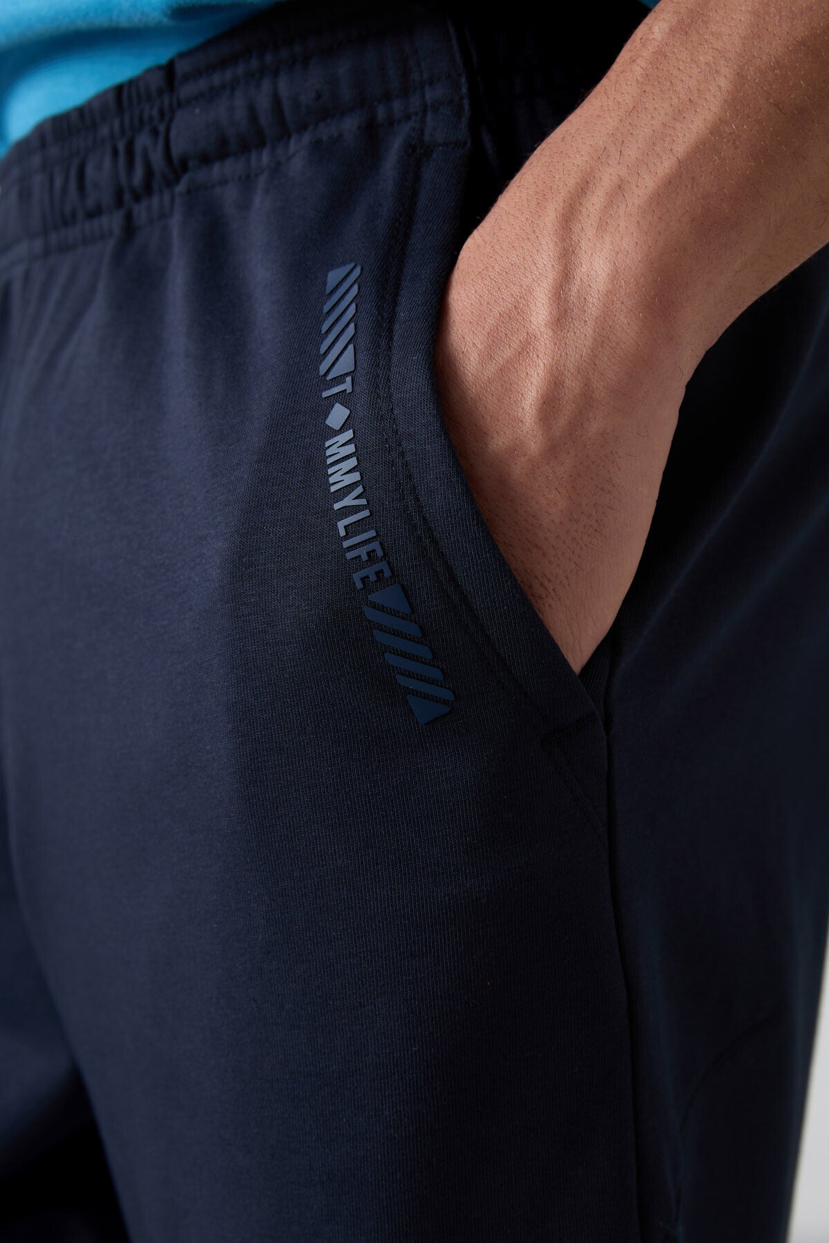 Navy Blue Cotton Thick Soft Textured Comfort Fit Printed Men's Shorts - 81263