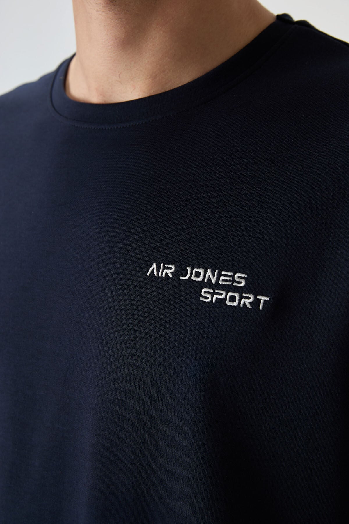 Navy Blue Cotton Thick Soft Textured Oversize Fit Embroidered Men's Tracksuit Set - 85252