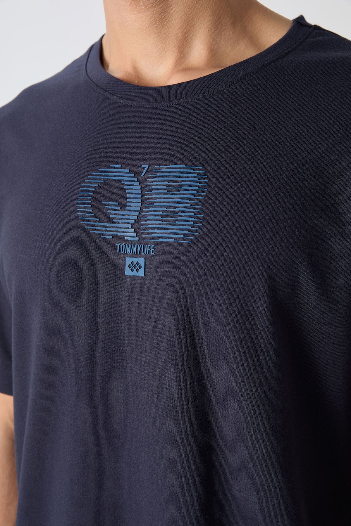 Navy Blue Cotton Thick Soft Textured Oversize Fit Printed Men's T-Shirt - 88333