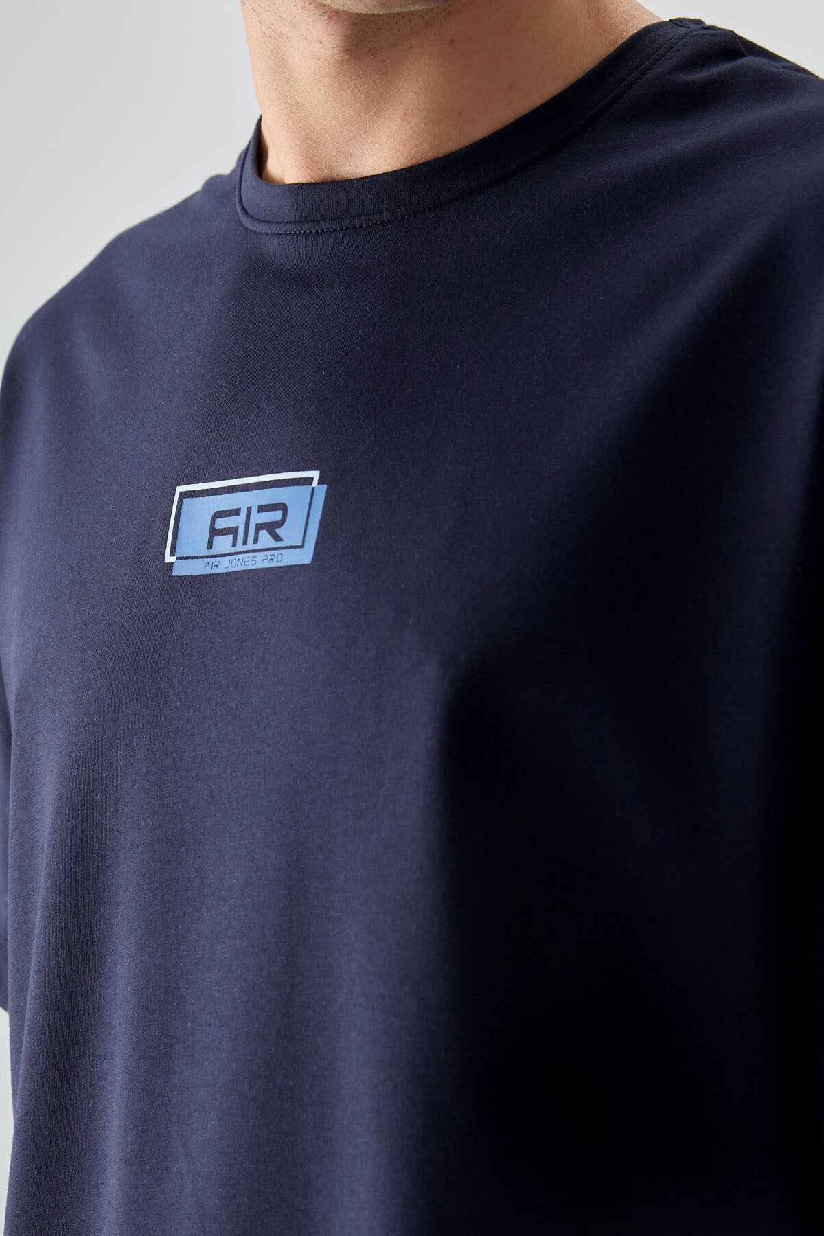 Navy Blue Cotton Thick Soft Textured Oversize Fit Printed Men's T-Shirt - 88376