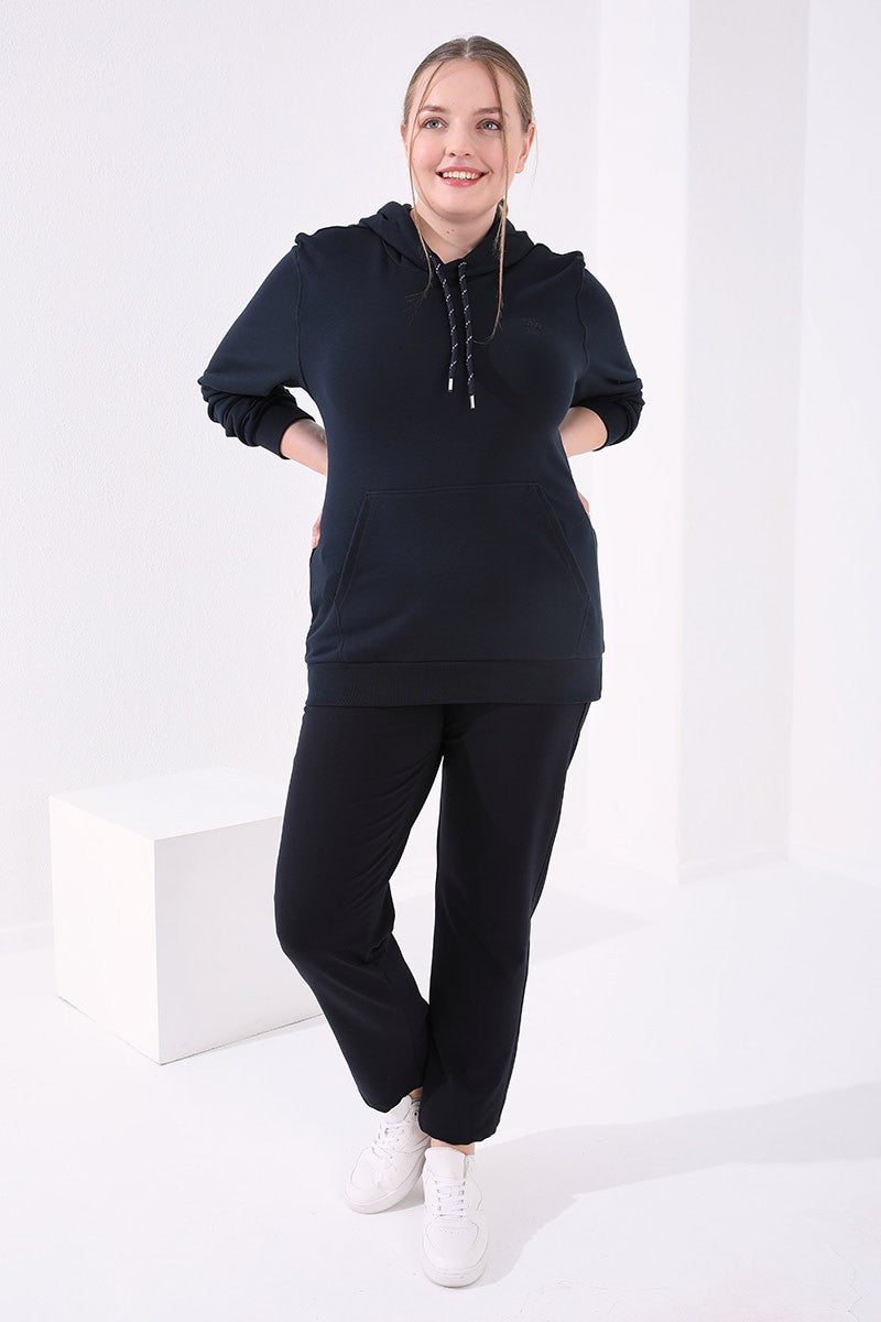 Navy Blue Cuffed Comfort Fit Classic Hem Women's Plus Size Tracksuit Bottom - 94017