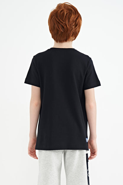 Navy Blue Detailed O Collar Standard Fit Boys' T-Shirt - 11120