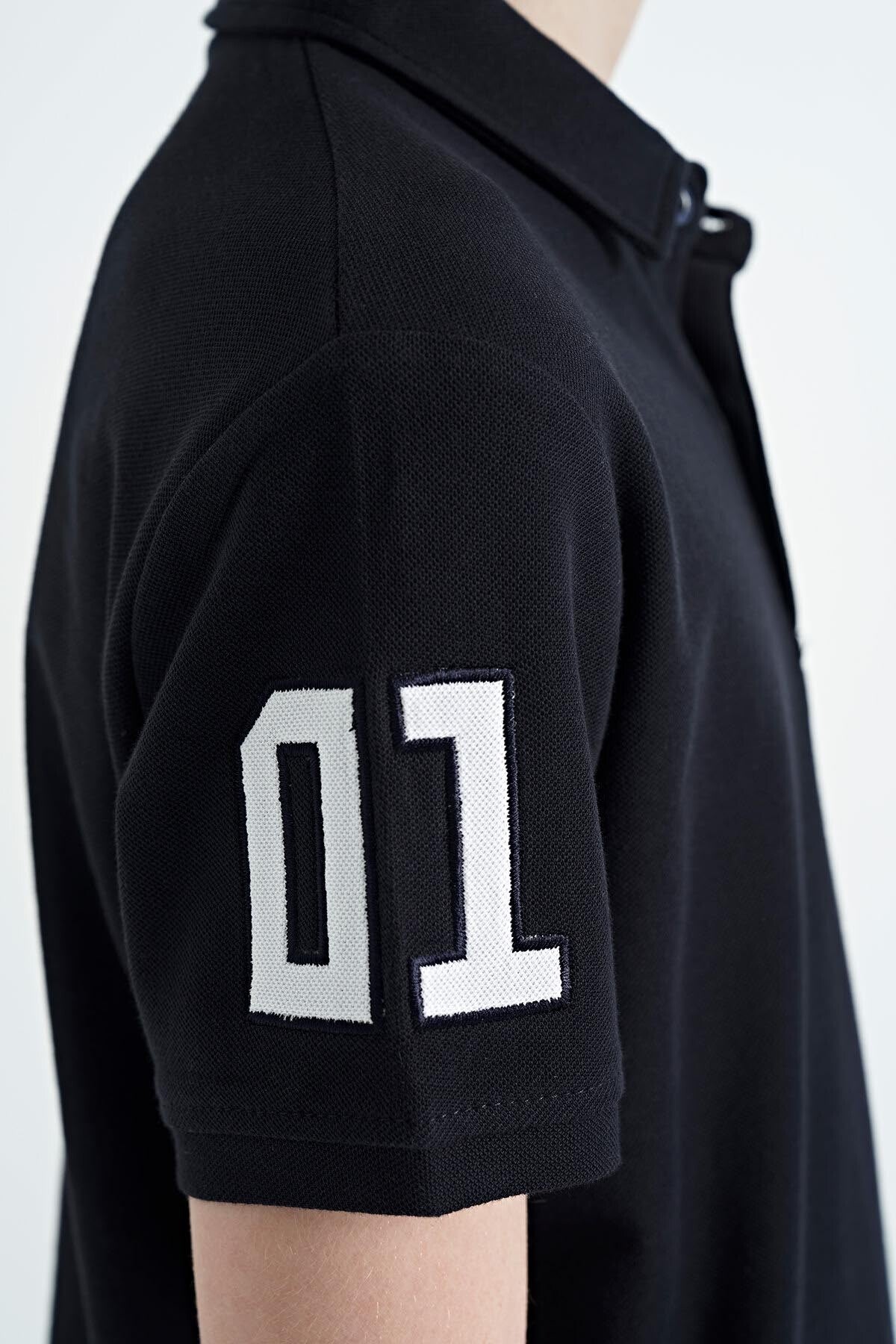 Navy Blue Embroidered Chest Detailed Standard Cut Polo Collar Boys' T-Shirt - 11086