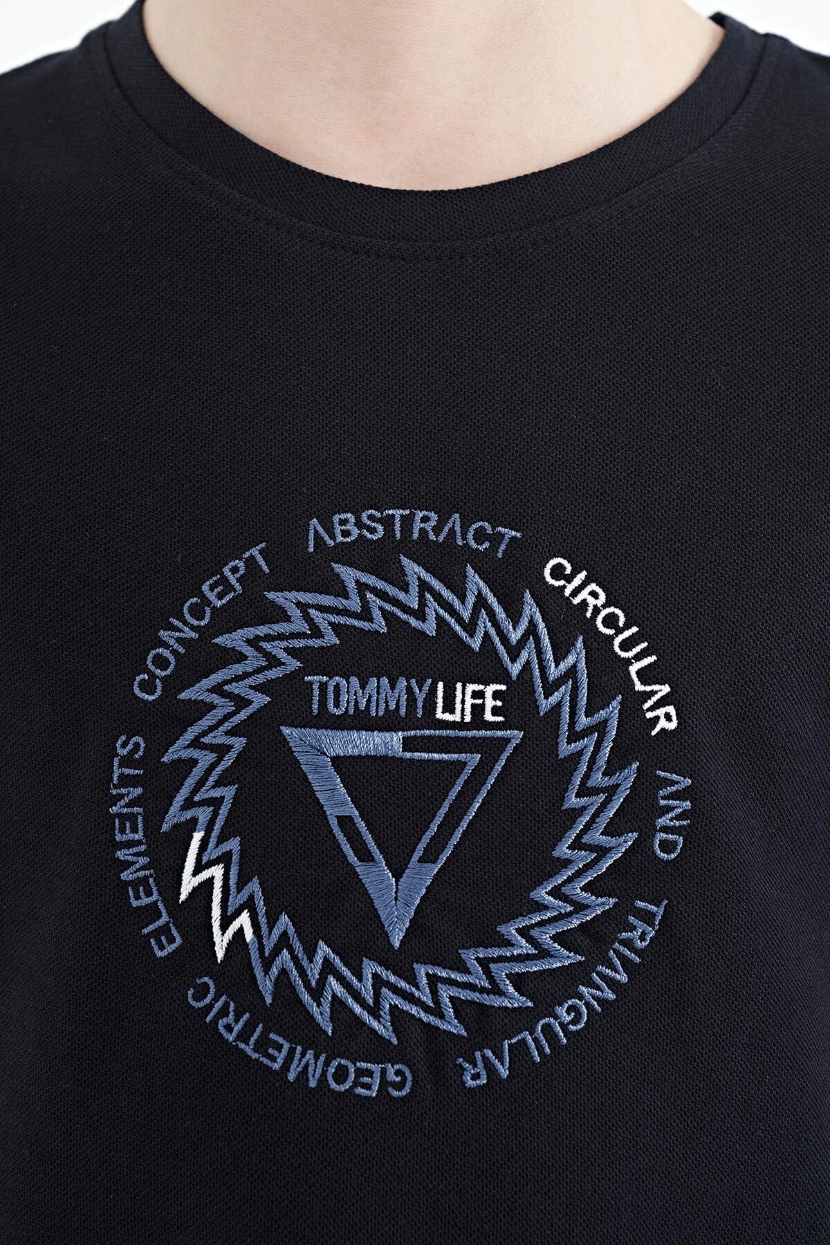 Navy Blue Embroidered Detailed O Collar Standard Fit Boys T-Shirt - 11115